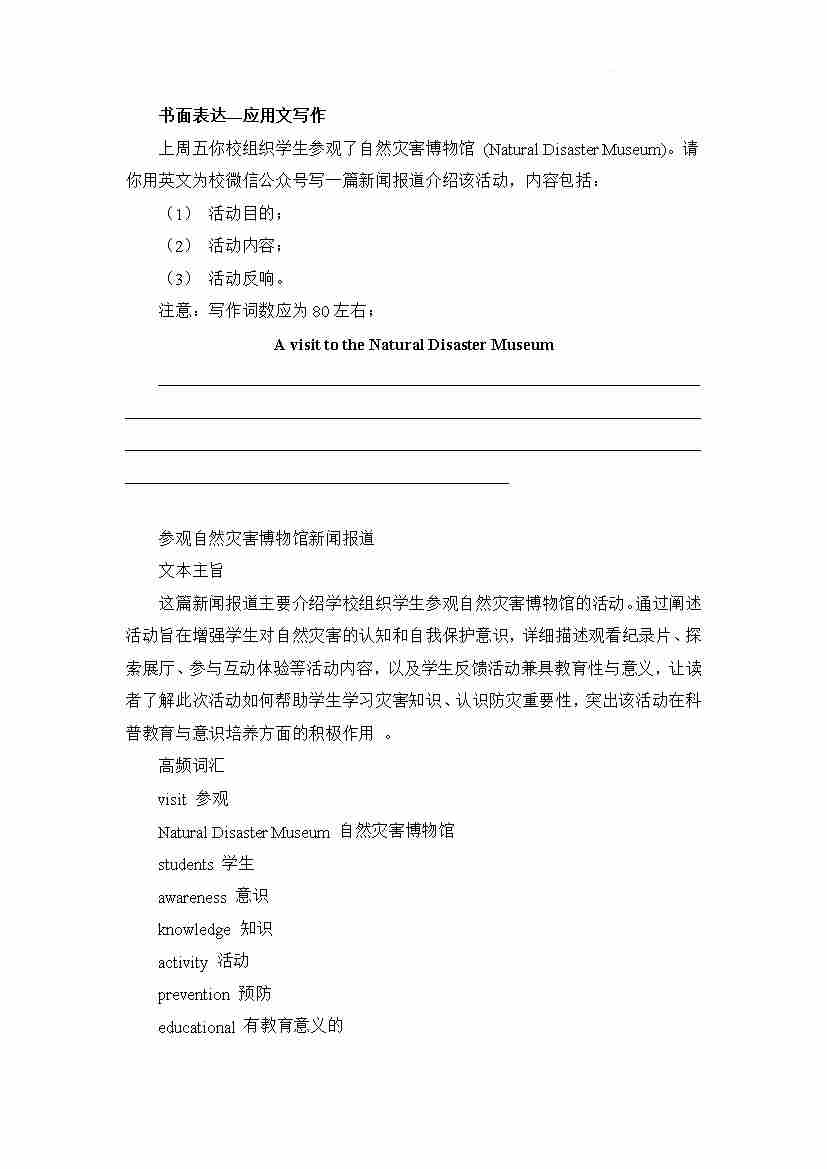 应用文写作 参观自然灾害博物馆新闻报道 讲义-江苏扬州市邗江区2024-2025学年高一下学期期中考试英语试卷