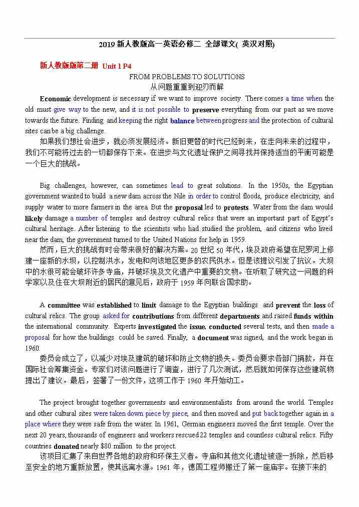 2019新人教版高一英语必修二 全部课文( 英汉对照)