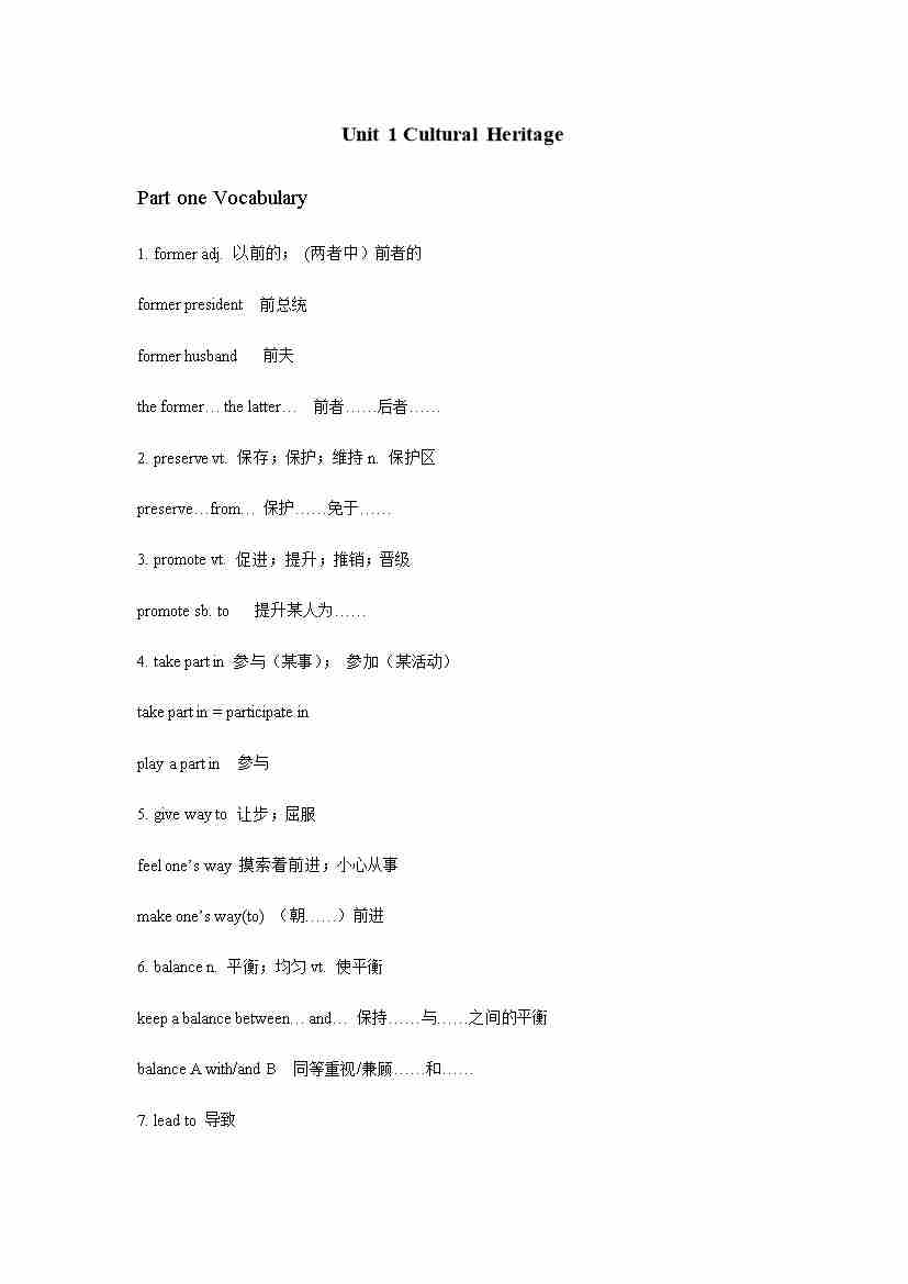 必修第二册期末复习重难点知识集锦 Unit 1 Cultural Heritage(知识点)