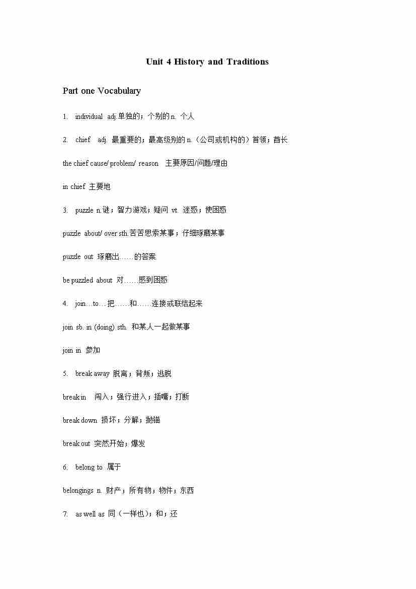 Unit 4 History and Traditions【速记清单】-2024-2025学年高一英语单元速记巧练(人教版2019必修第二册)_48346991_17489464484724248