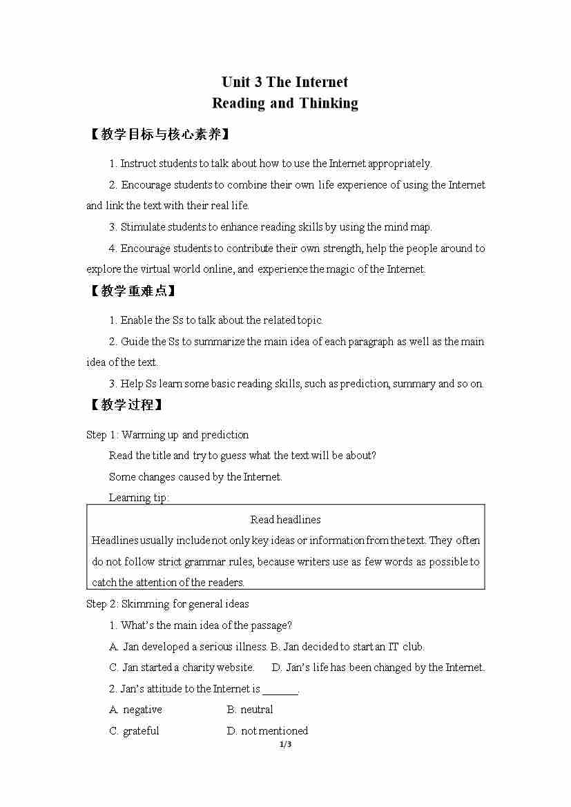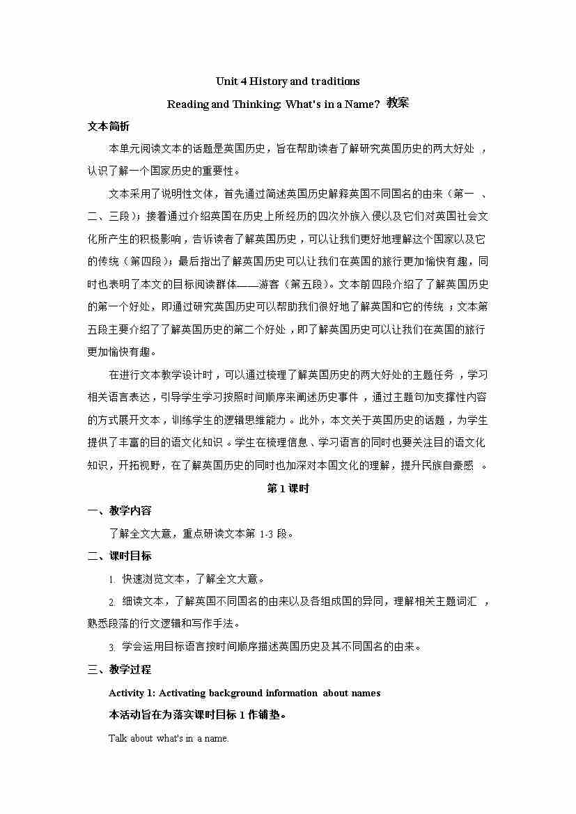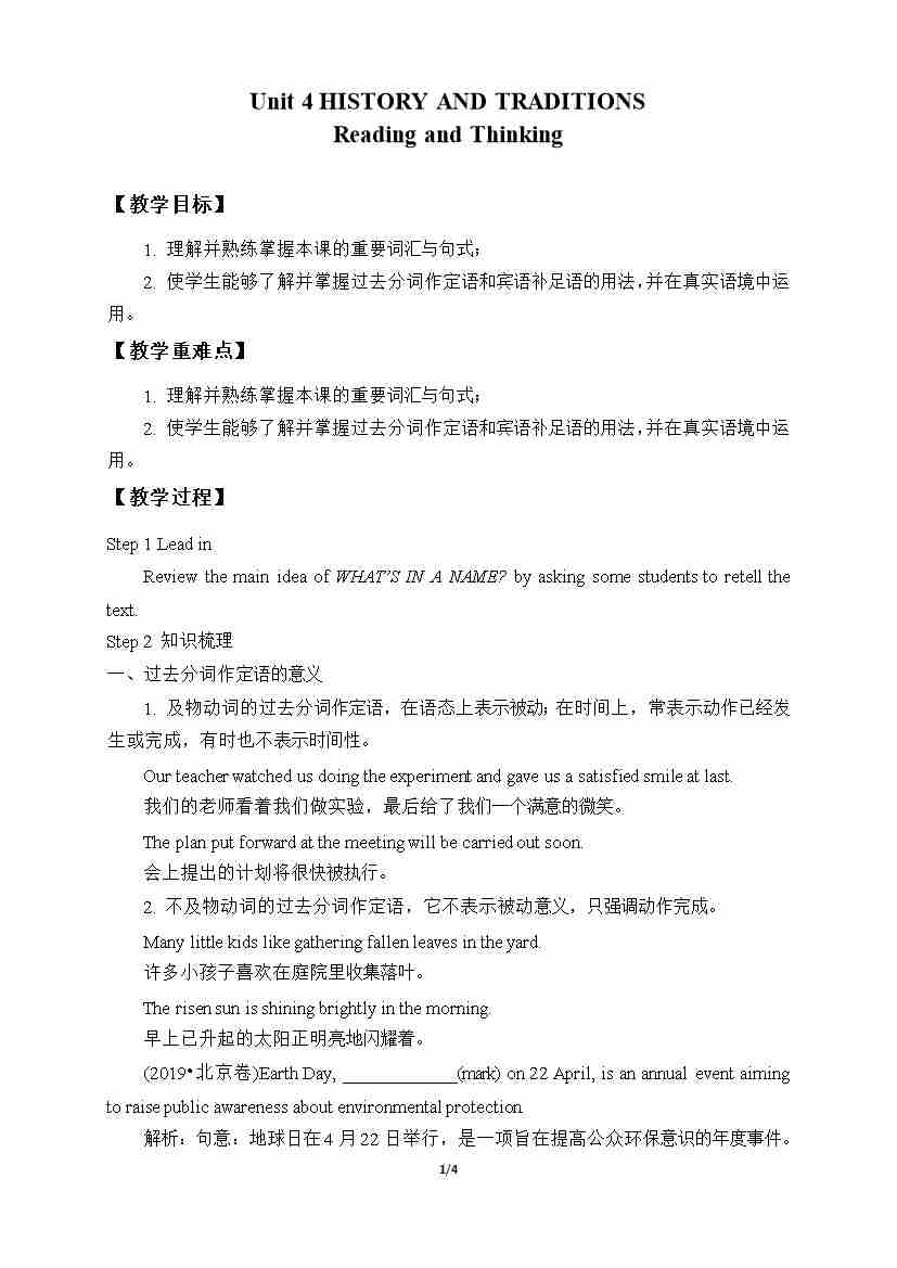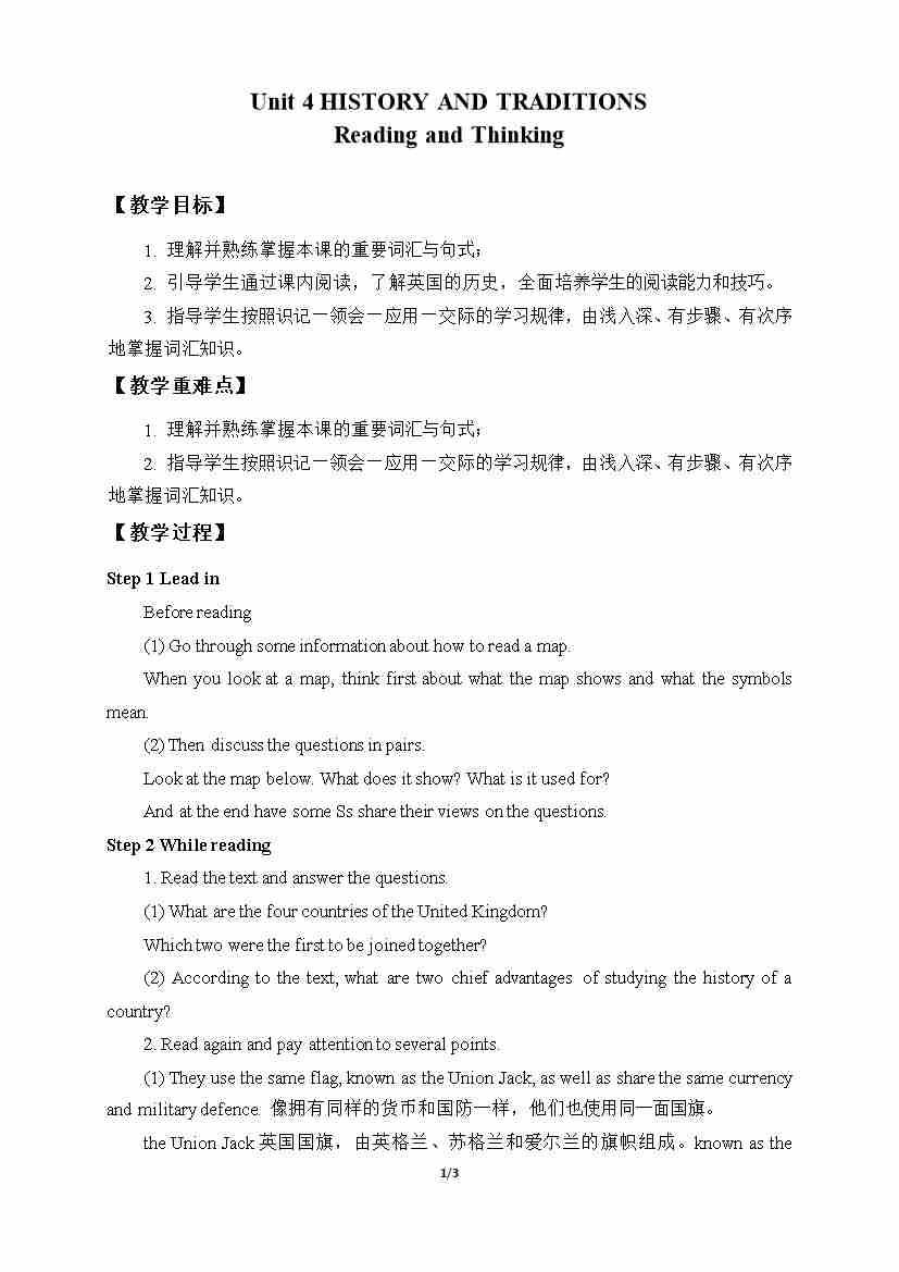 Unit 4 History and traditions(Reading and Thinking)教案(2课时)