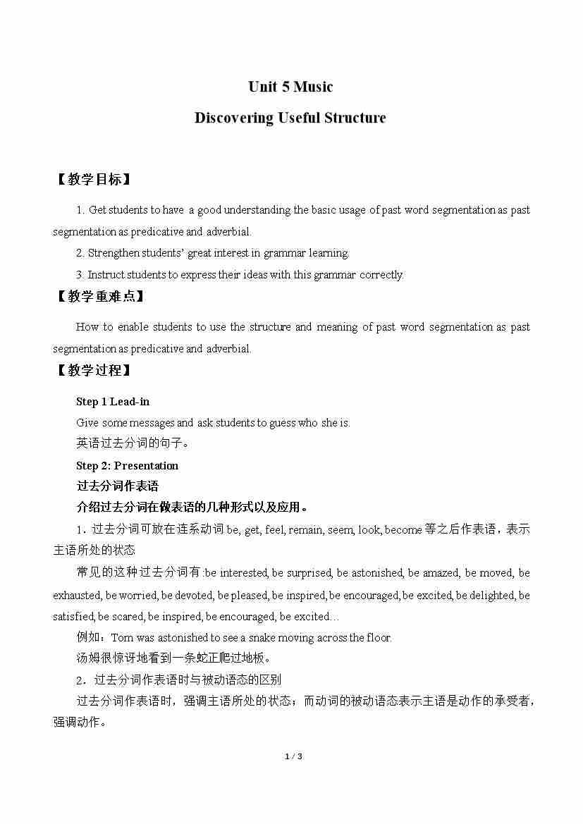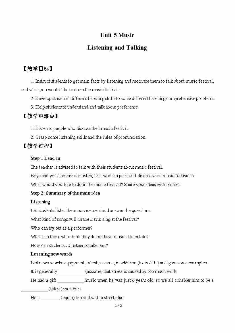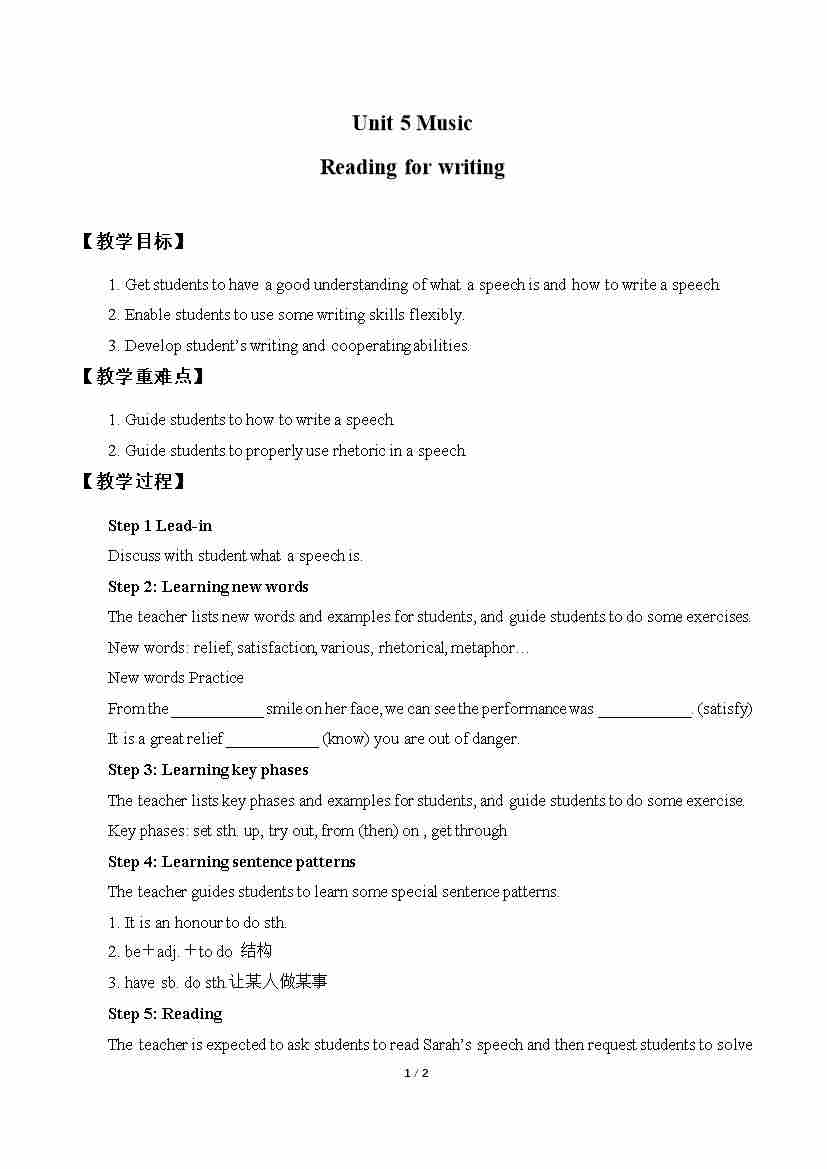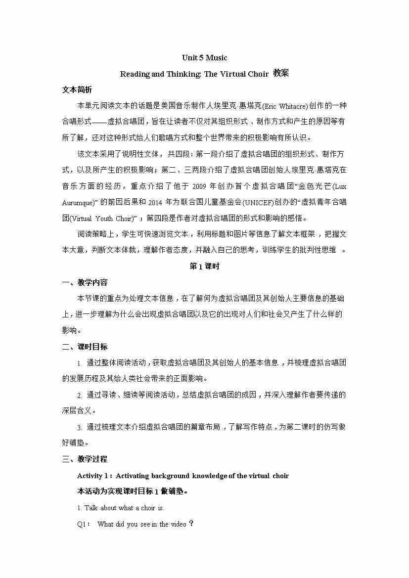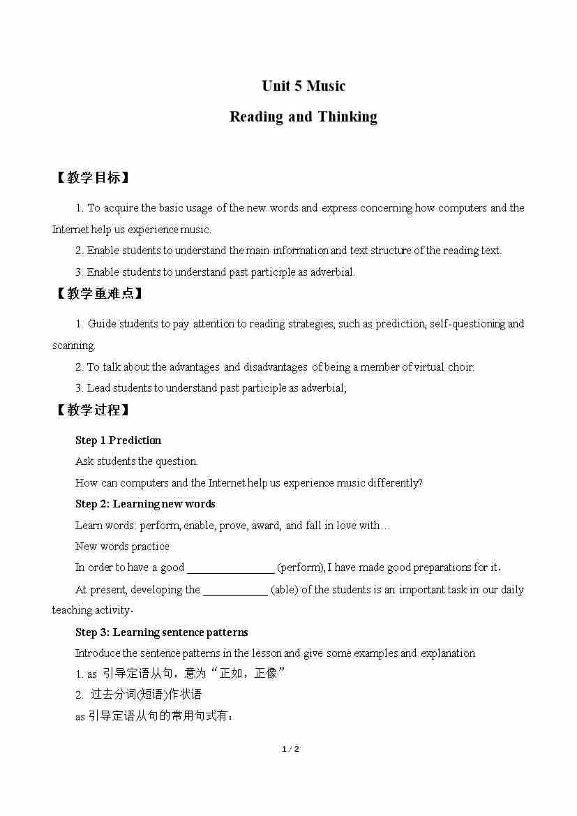Unit 5 Music(Reading and Thinking)教案(2课时)