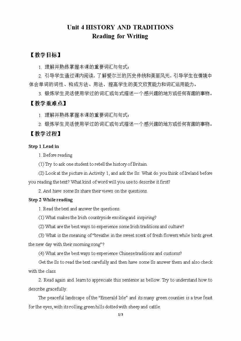 Unit4HISTORYANDTRADITIONS-ReadingforWriting教案