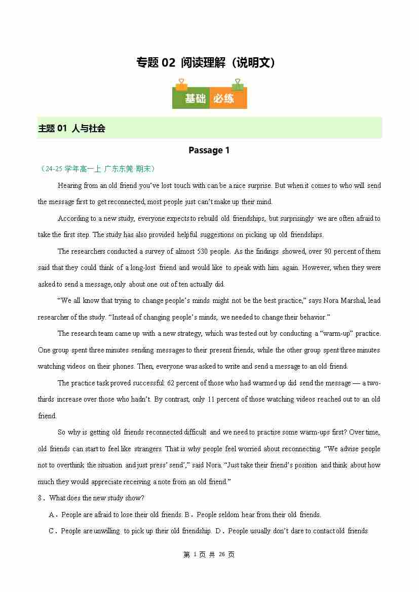 专题02 阅读理解(说明文)(期末真题汇编,全国通用)(原卷版)