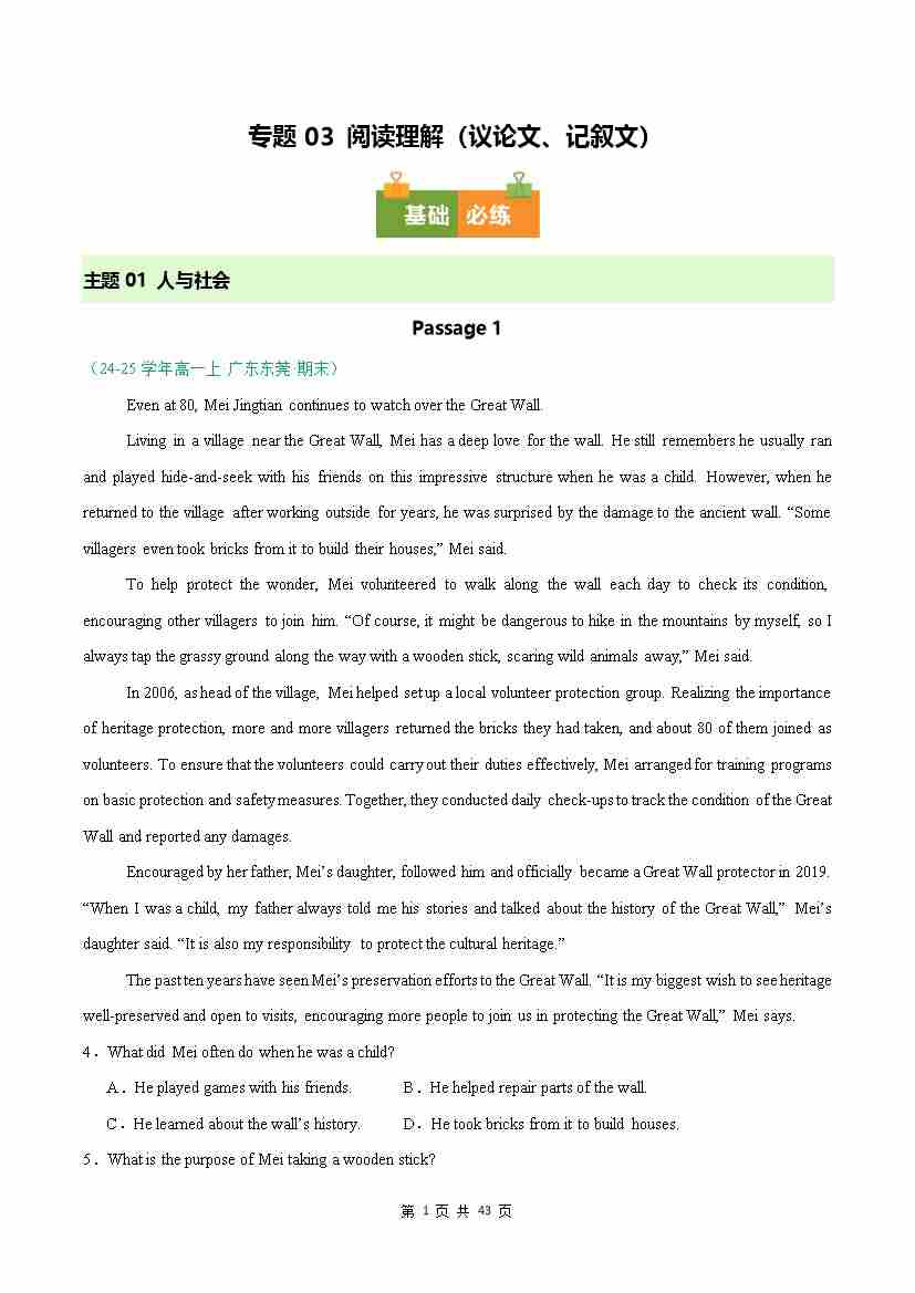 专题03 阅读理解(议论文、记叙文)(期末真题汇编,全国通用)(解析版)