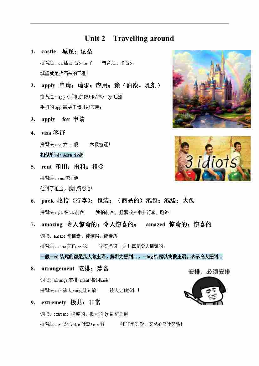 Unit 2 Travelling around-【快乐背单词】高一英语单词暑假巧记妙背(2019人教版必修第一册)