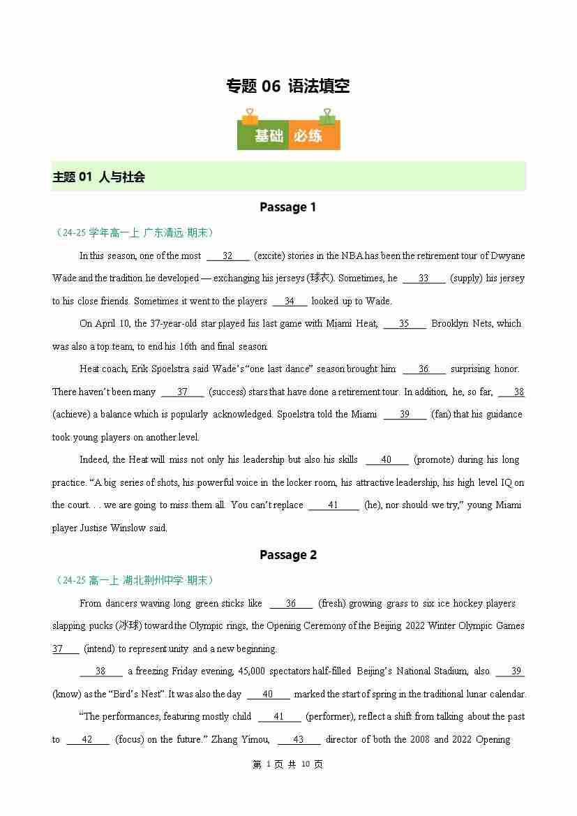 专题06 语法填空(期末真题汇编,全国通用)(原卷版)