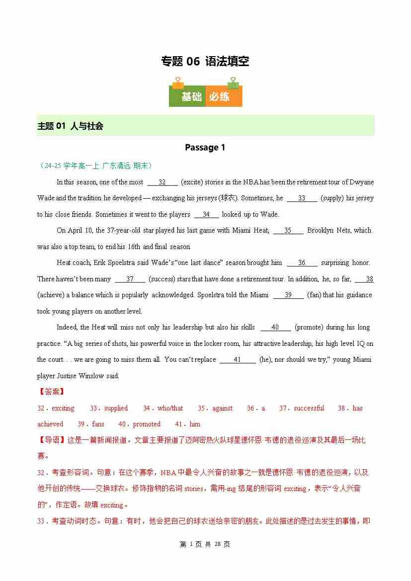 专题06 语法填空(期末真题汇编,全国通用)(解析版)