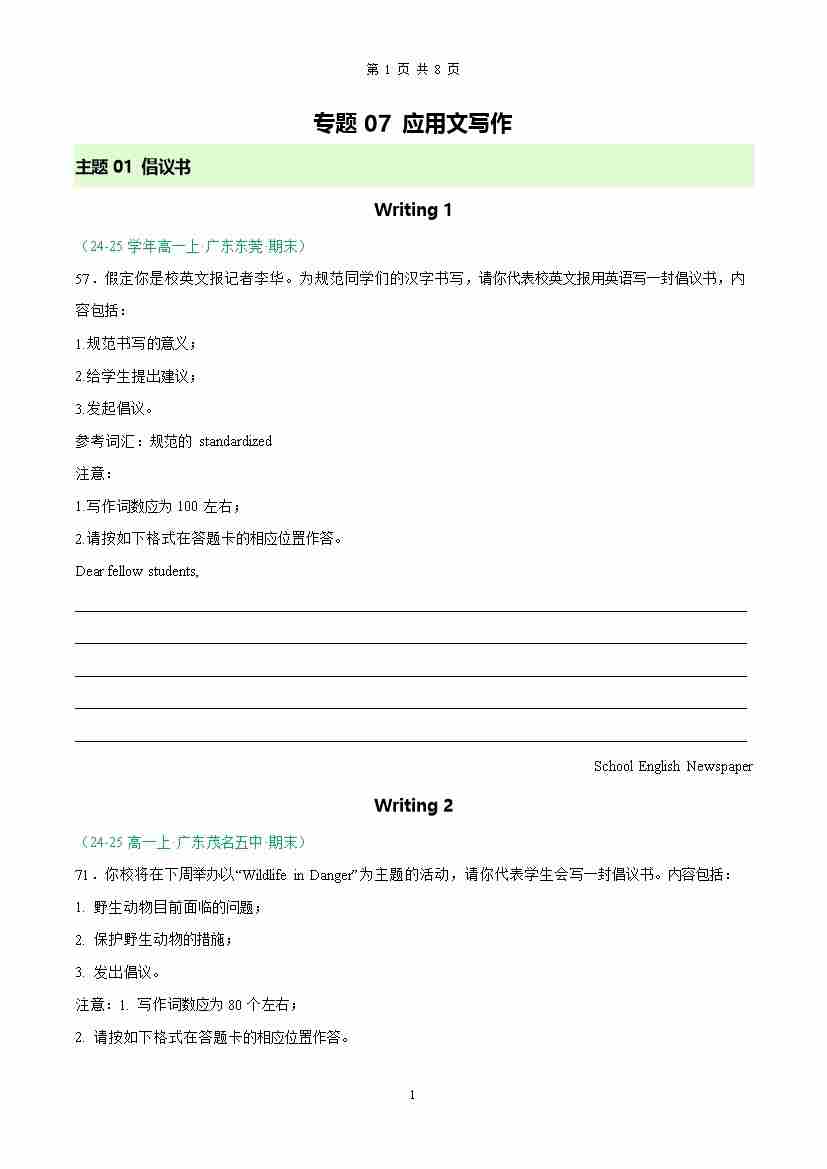 专题07 应用文写作(期末真题汇编,全国通用)(原卷版)