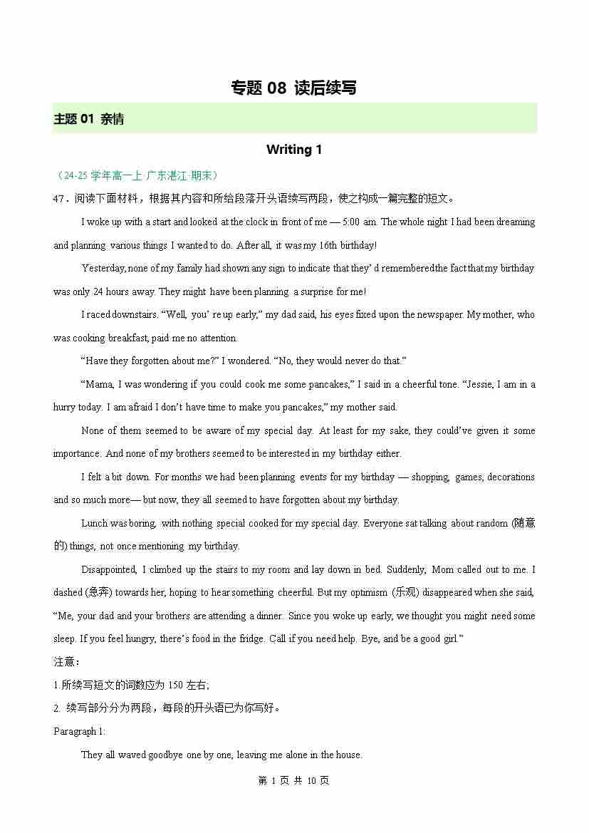专题08 读后续写(期末真题汇编,全国通用)(原卷版)