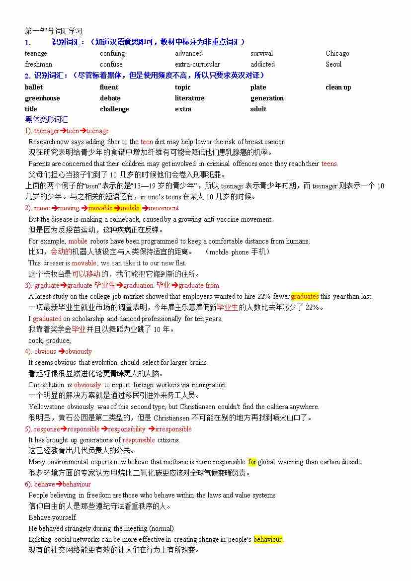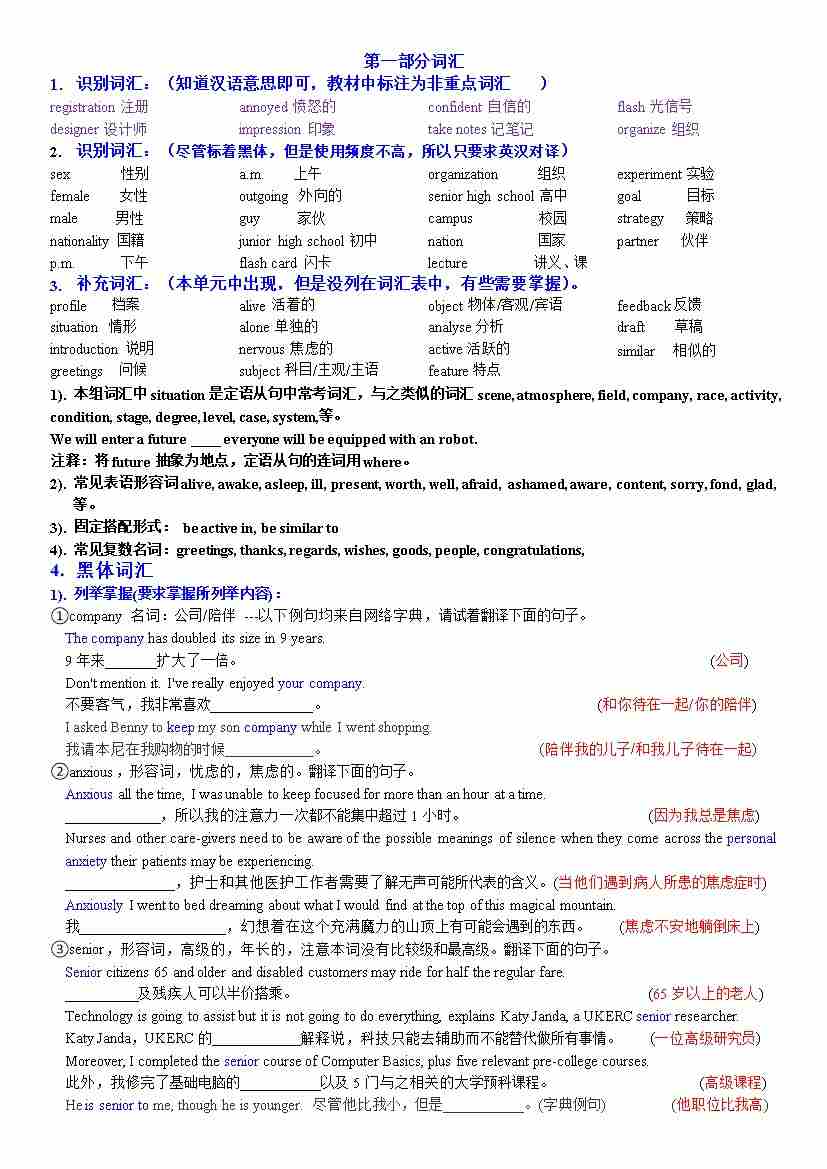 高一新教材英语第一单元知识点详解