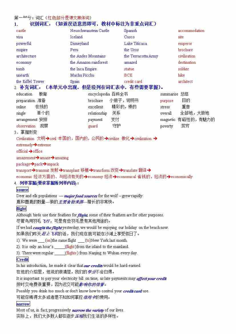 高一新教材英语第三单元知识点详解