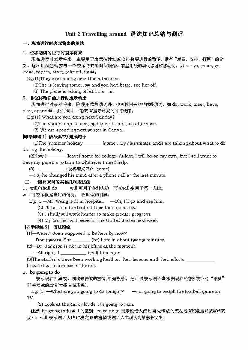 必修一 Unit 2 Travelling Around 表将来的方式(解析版)