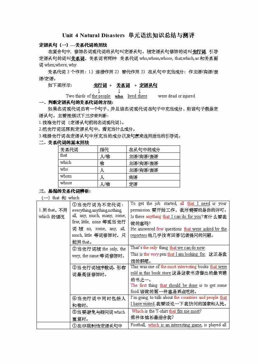 Unit 4 Natural Disasters 单元语法知识总结与测评