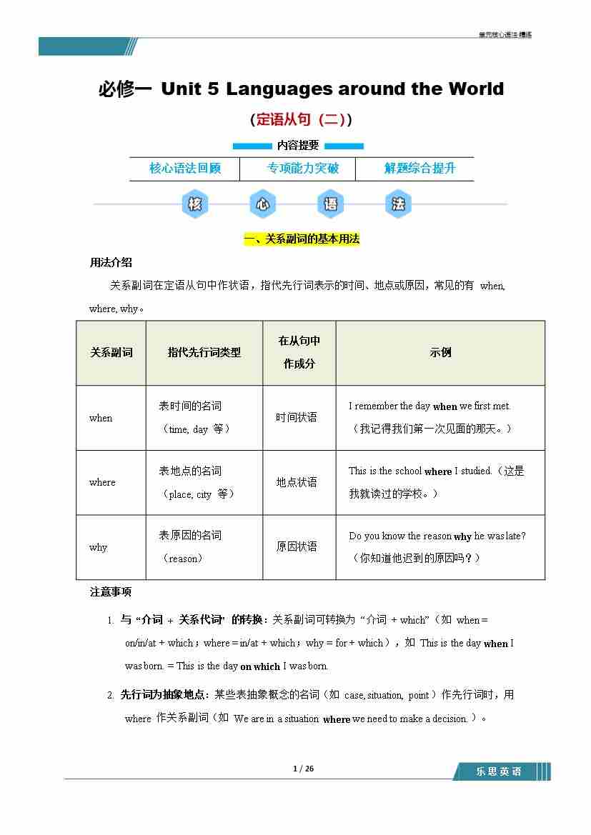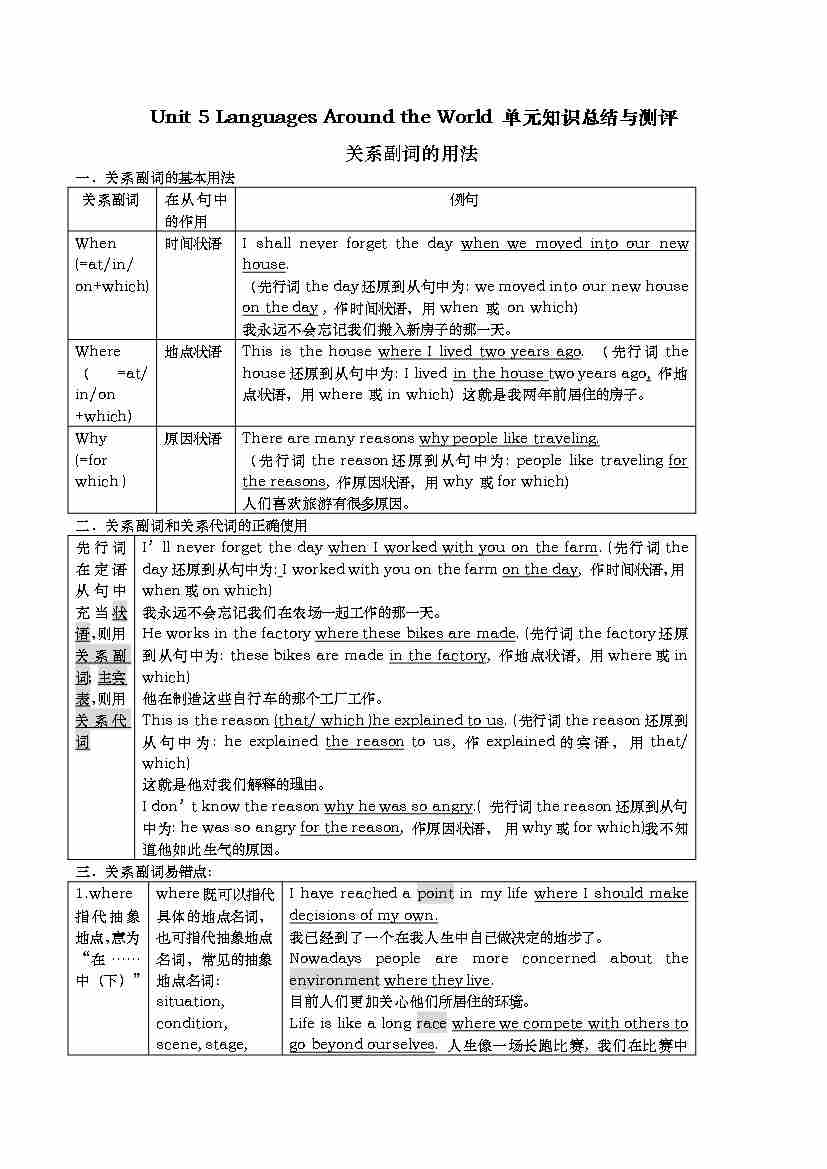 Unit 5 Languages Around the World单元语法知识总结与测评