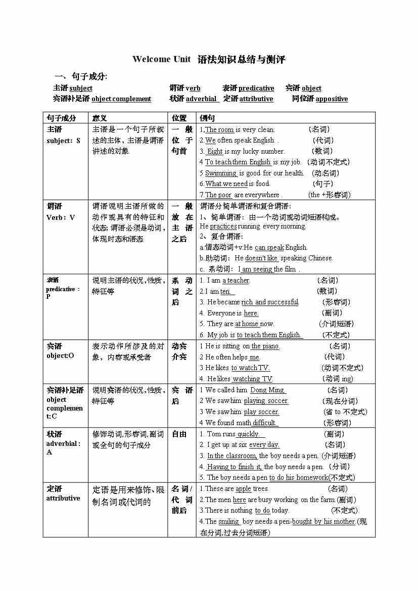 必修一 Welcome Unit 句子成分&基本句型(解析版)2