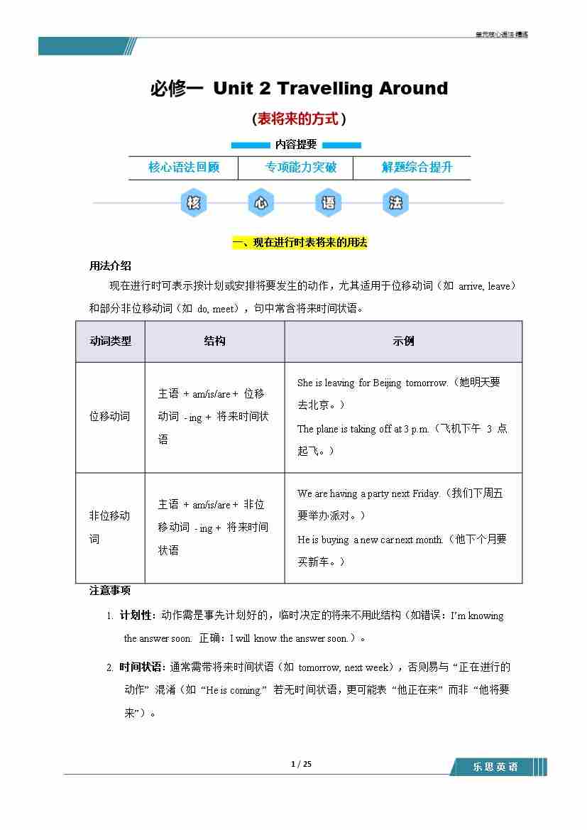 必修一 Unit 2 Travelling Around 表将来的方式(原卷版)