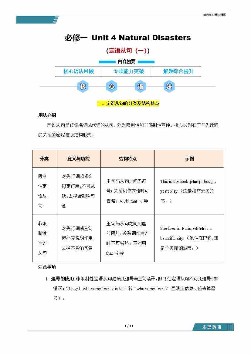 必修一 Unit 4 Natural Disasters 定语从句(一)(解析版)
