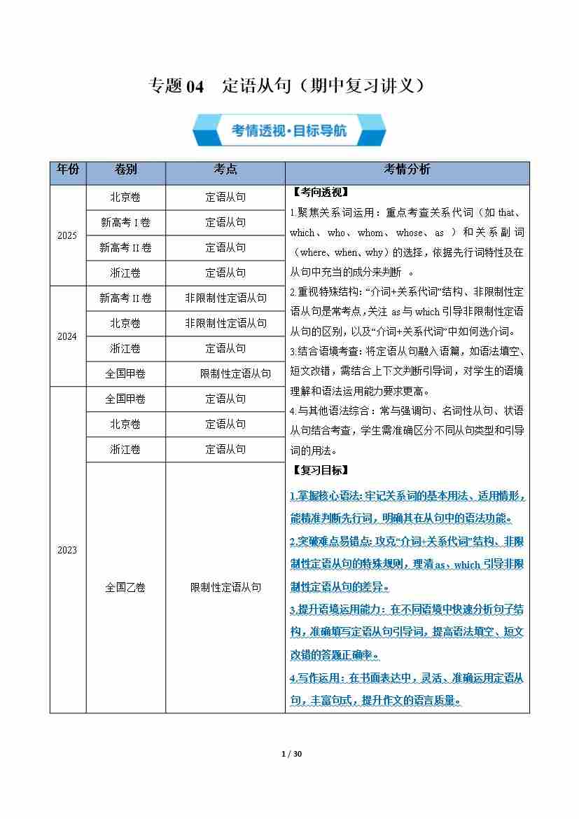 专题04 定语从句(期中复习讲义) (原卷版)