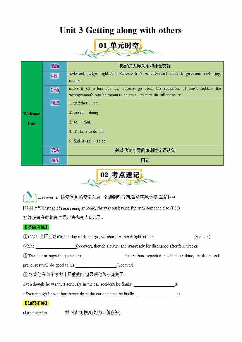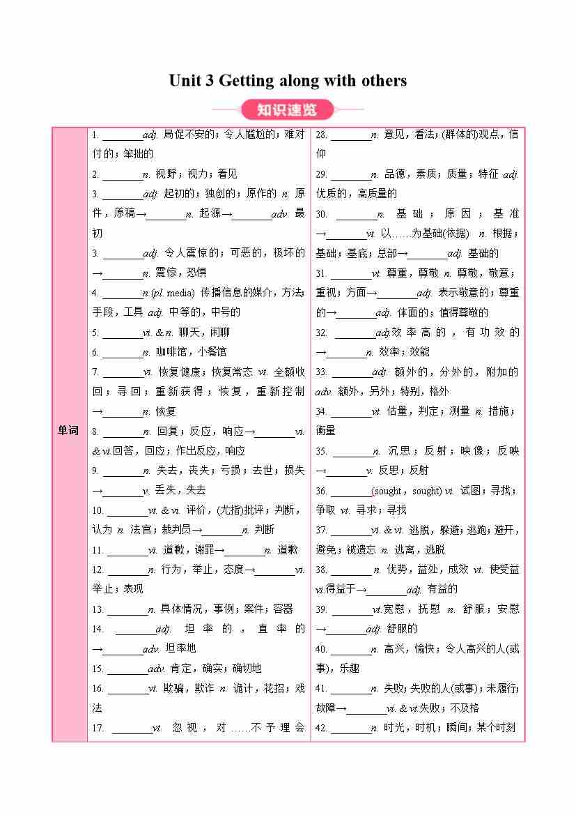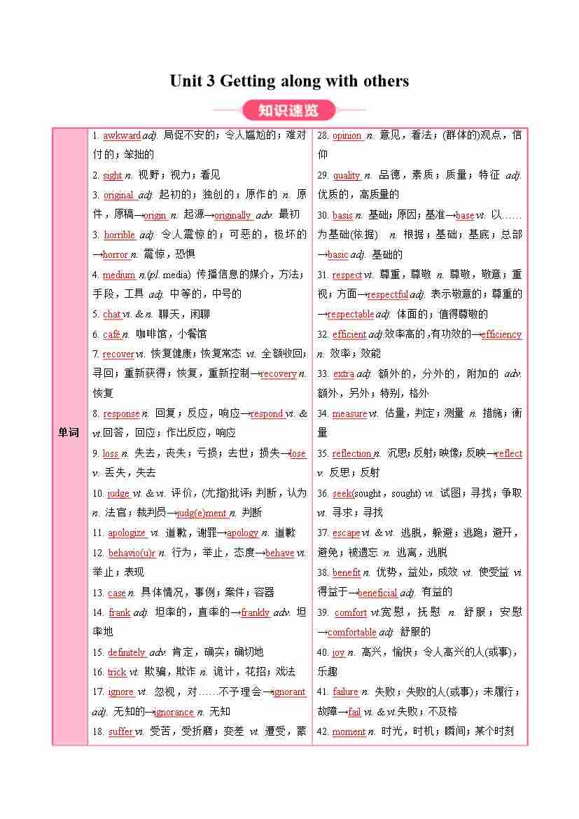 Unit 3 Getting along with othes(知识清单)(教师版)