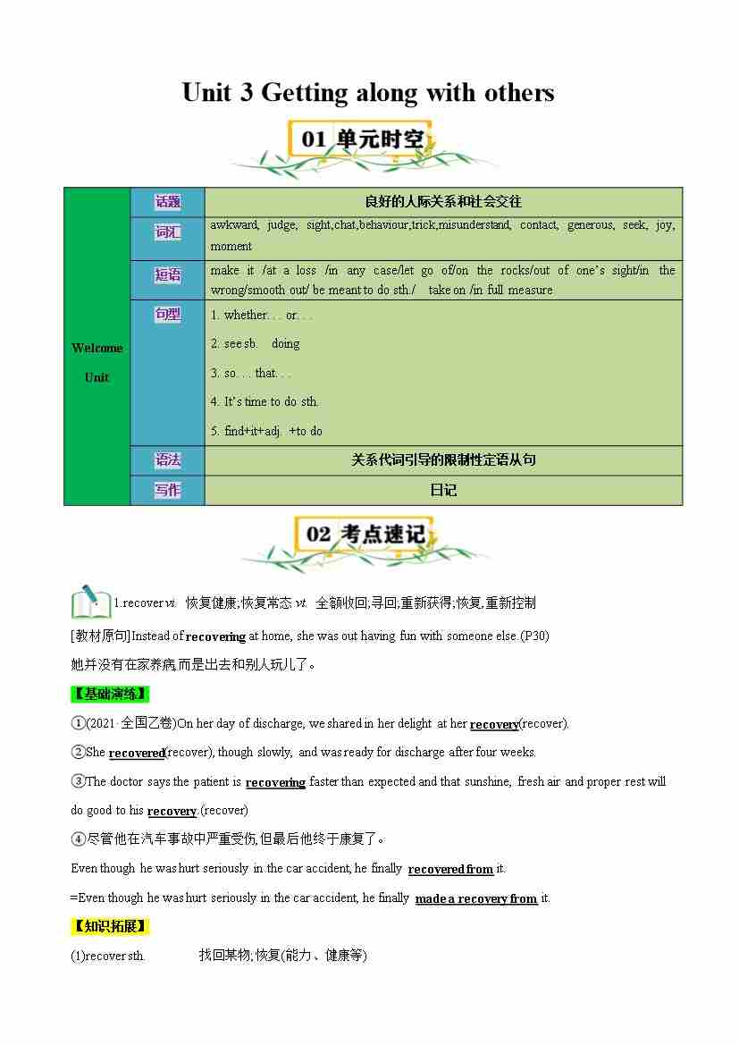 Unit 3 Getting along with others(知识清单)(学生版)-(译林版2020必修第一册)