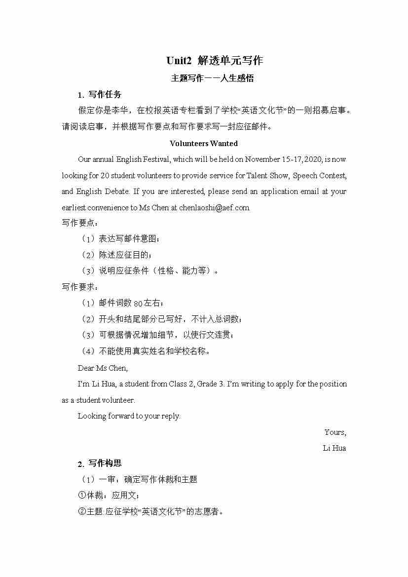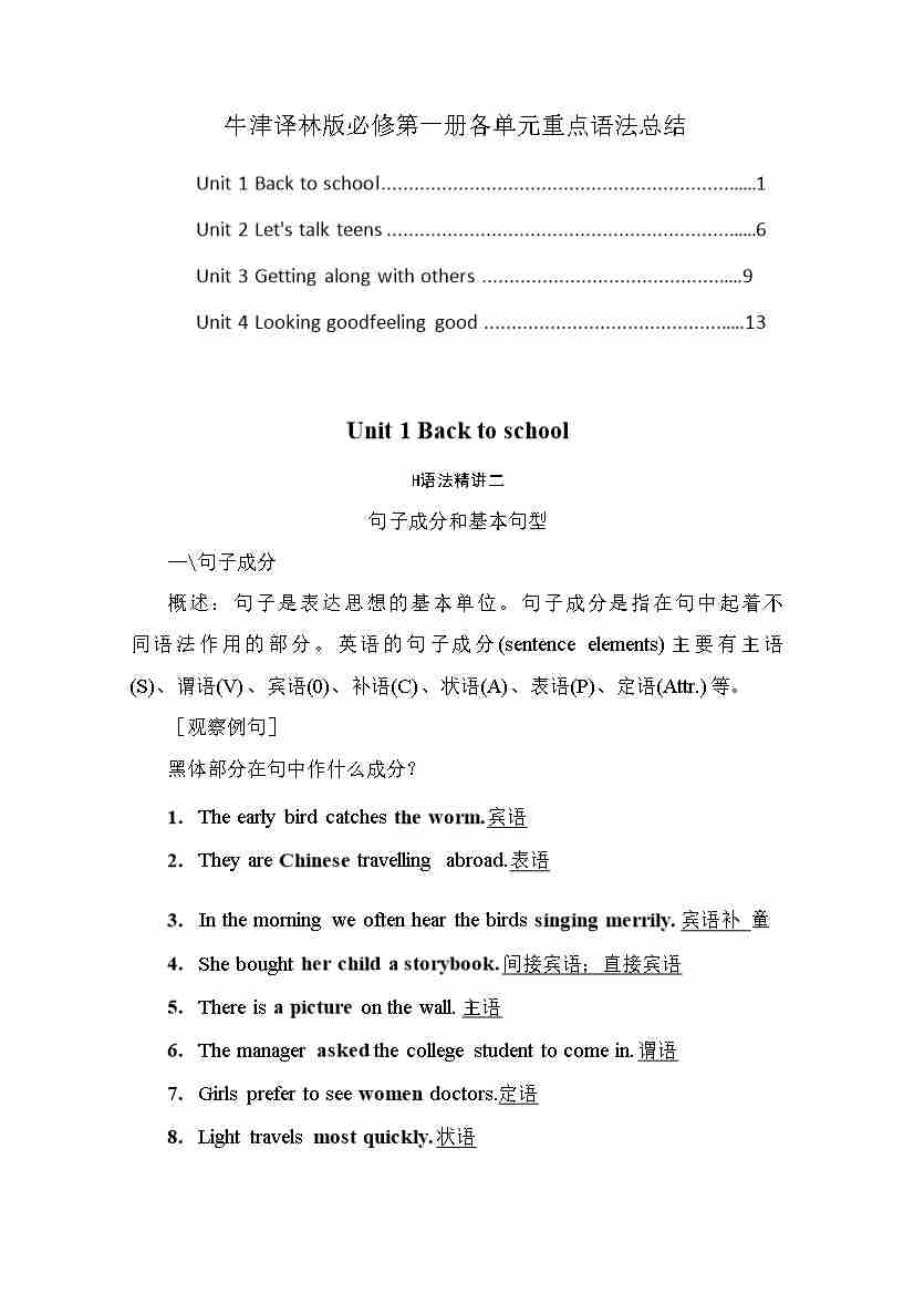 Unit 4 Looking good,feeling good(知识清单)(教师版)-(译林版2020必修第一册)