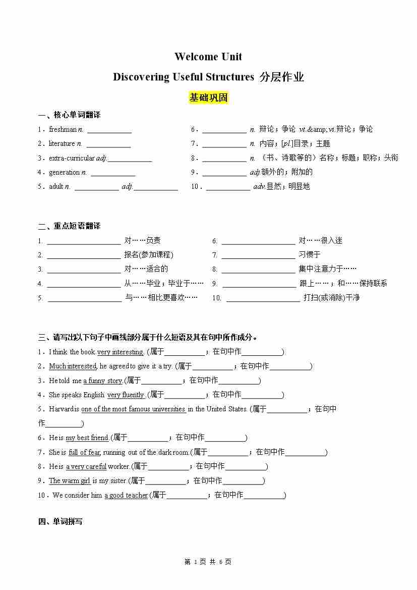 Unit 1 Teenage Life Discovering Useful Structures分层作业(原卷版)