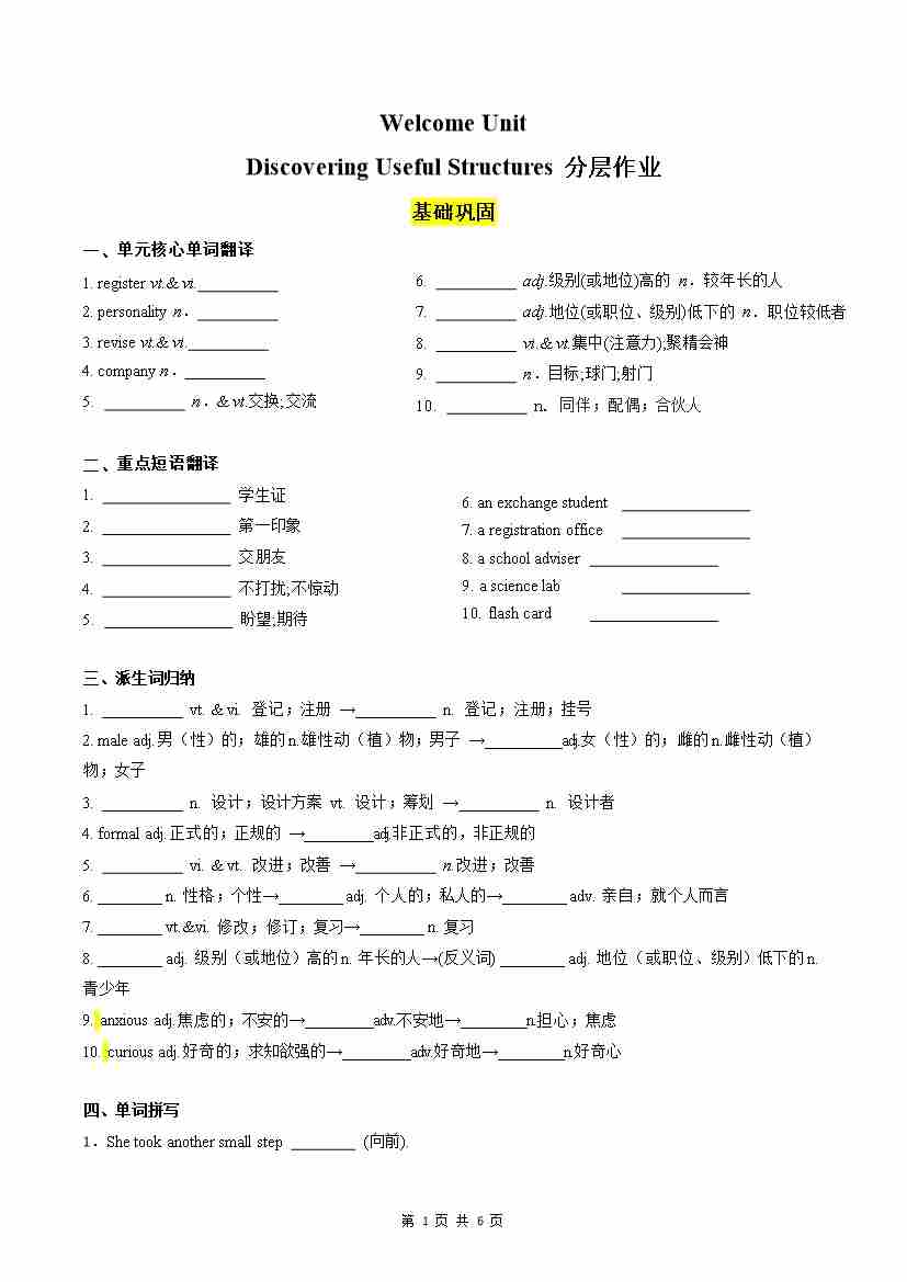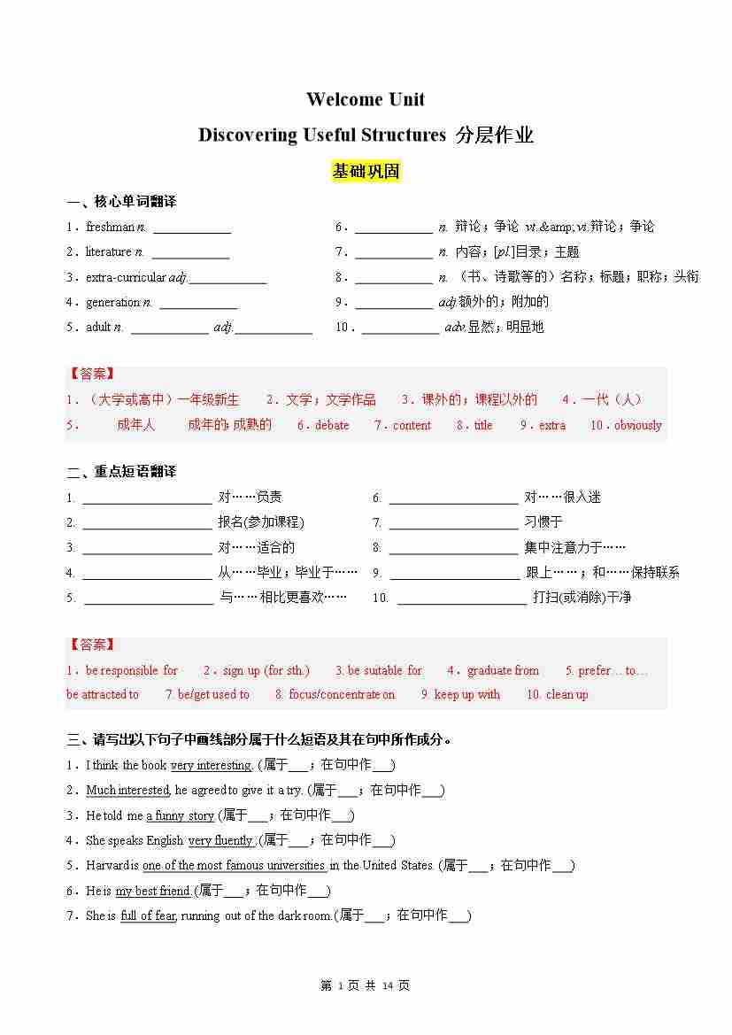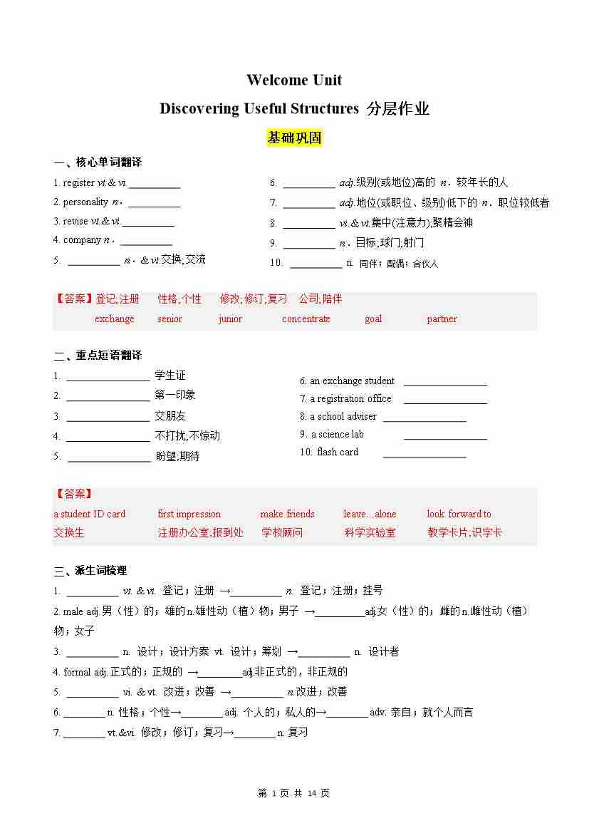 Welcome Unit Discovering Useful Structures分层作业(解析版)