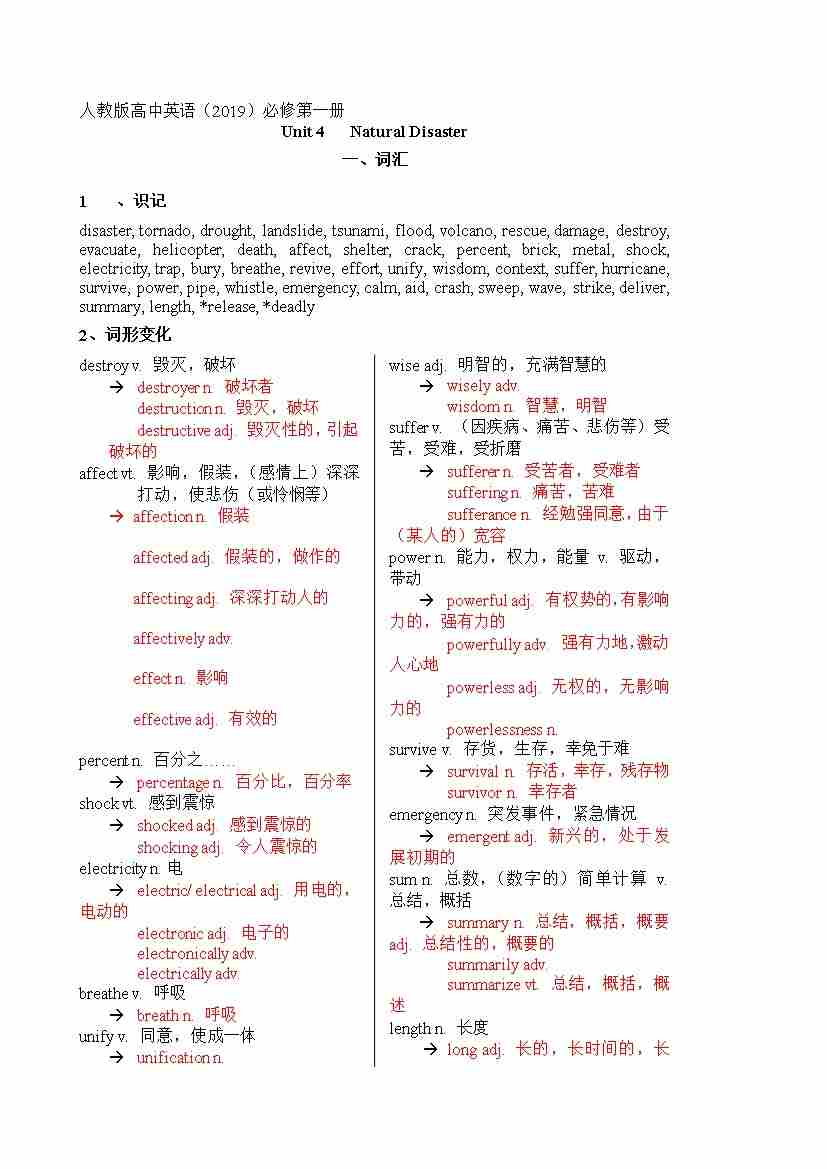 Unit 4 Natural disasters 教案(含词汇,阅读,语法,写作)【新教材】