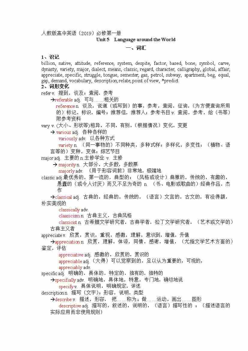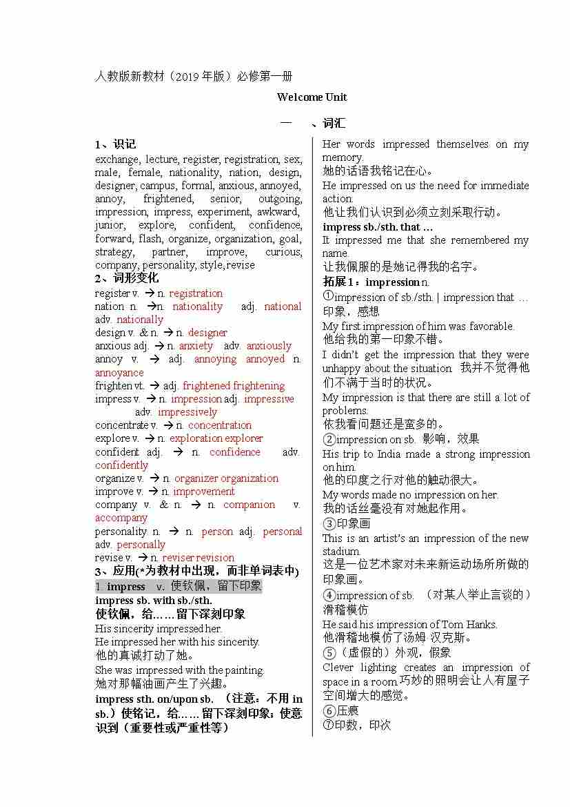 【合并版】必修一Welcome unit~Unit5 教材标注笔记