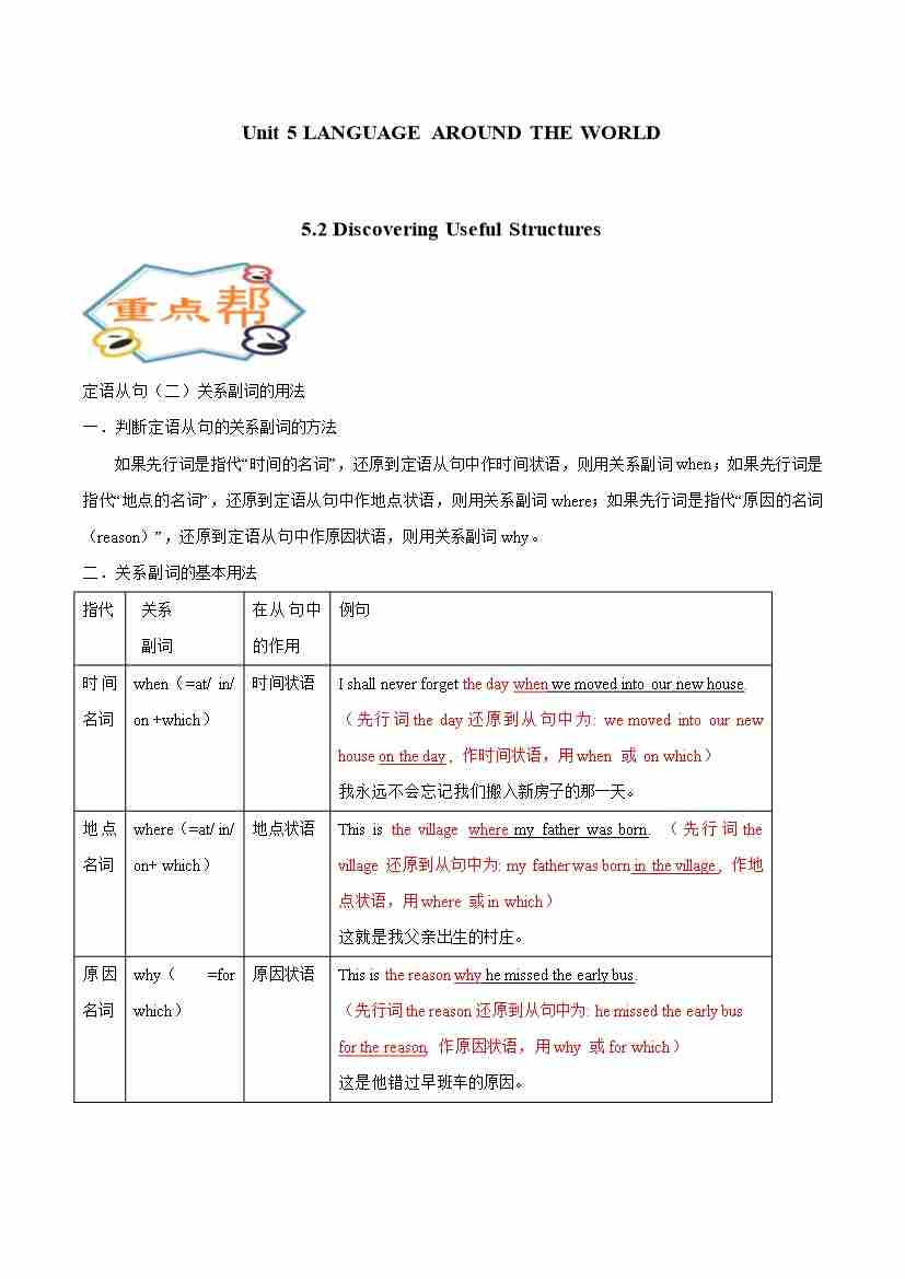 Unit 5-2 Discovering Useful Structures-高一英语上学期同步课堂帮帮帮必修第一册