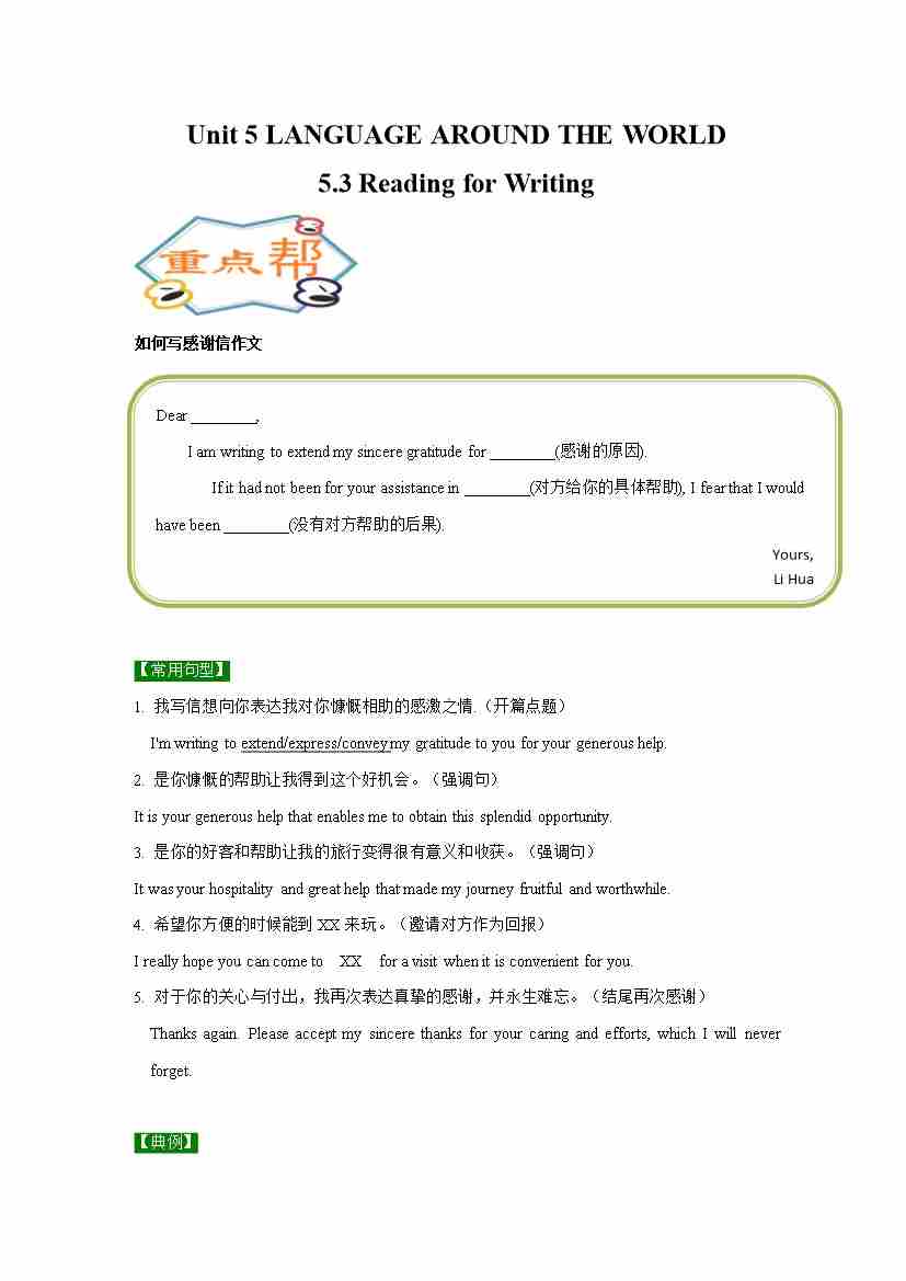 Unit 5-3 Reading for Writing-高一英语上学期同步课堂帮帮帮必修第一册
