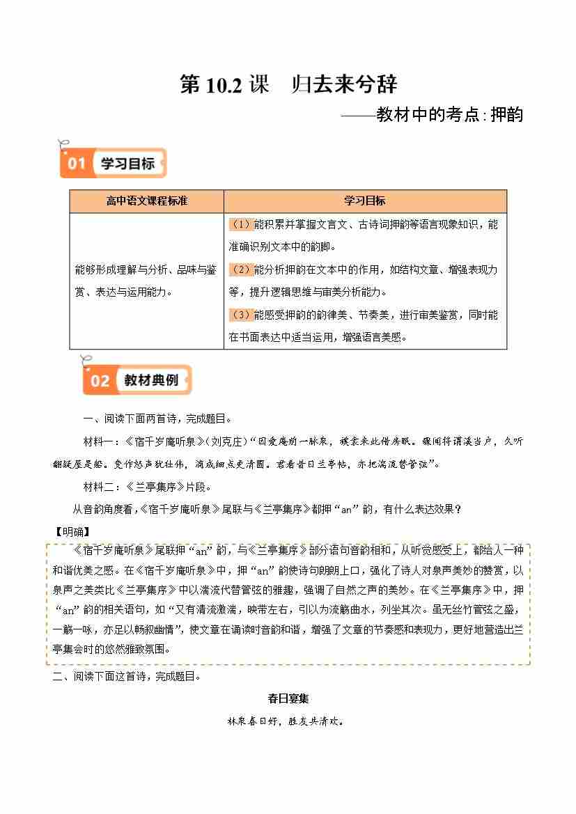 第10.2课 归去来兮辞(教材中的考点:押韵)(学生版)