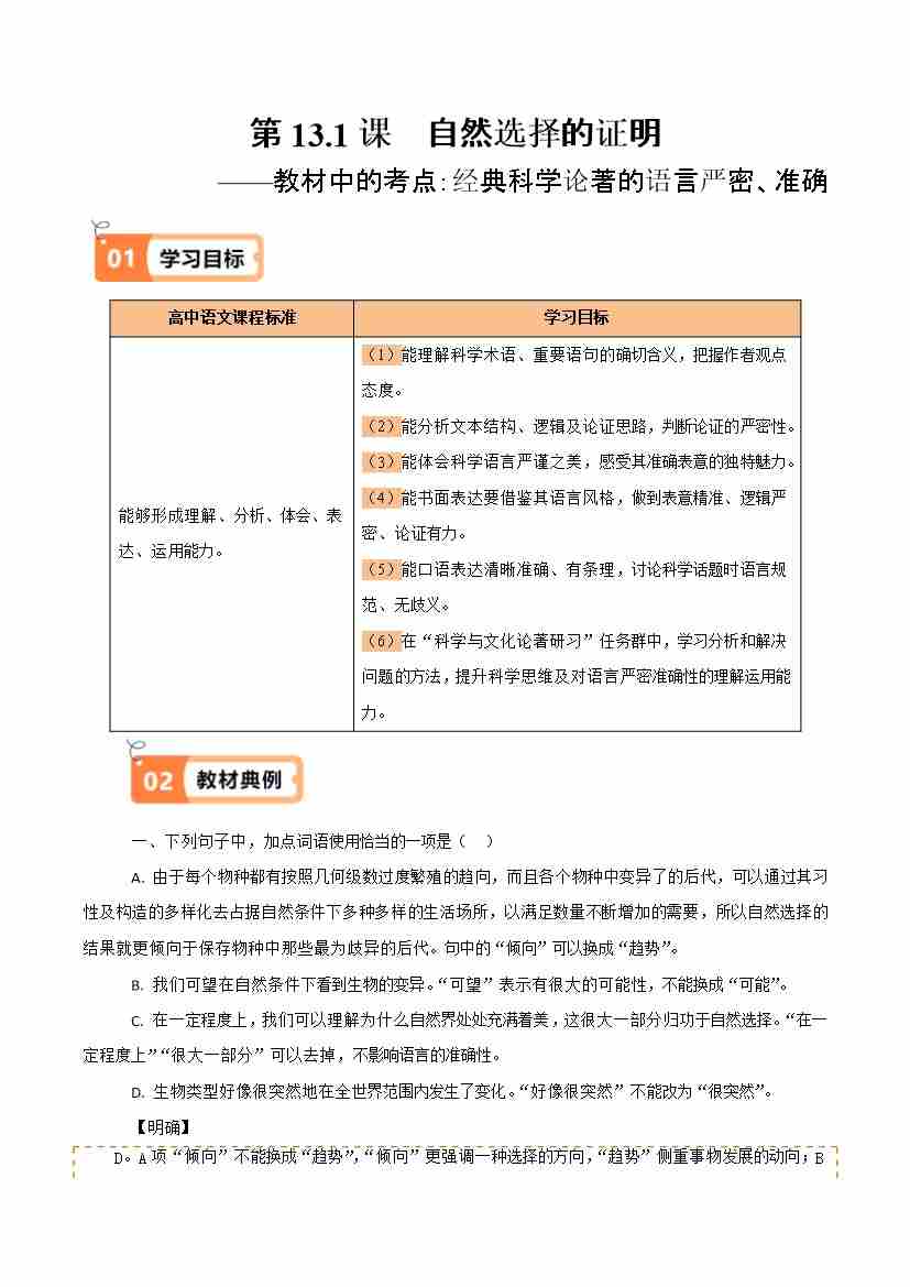 第13.1课 自然选择的证明(教材中的考点:经典科学论著的语言严密、准确)(学生版)