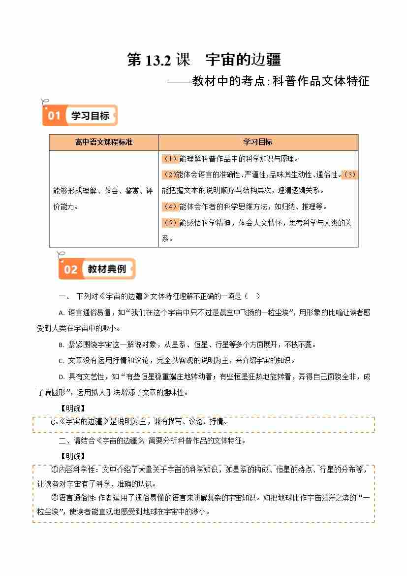 第13.2课 宇宙的边疆(教材中的考点:科普作品的文体特征)(教师版)