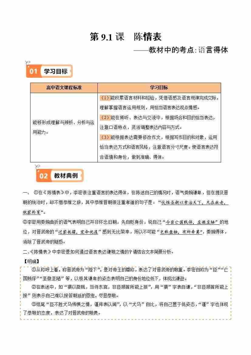第9.1课 陈情表(教材中的考点:语言得体)(学生版)