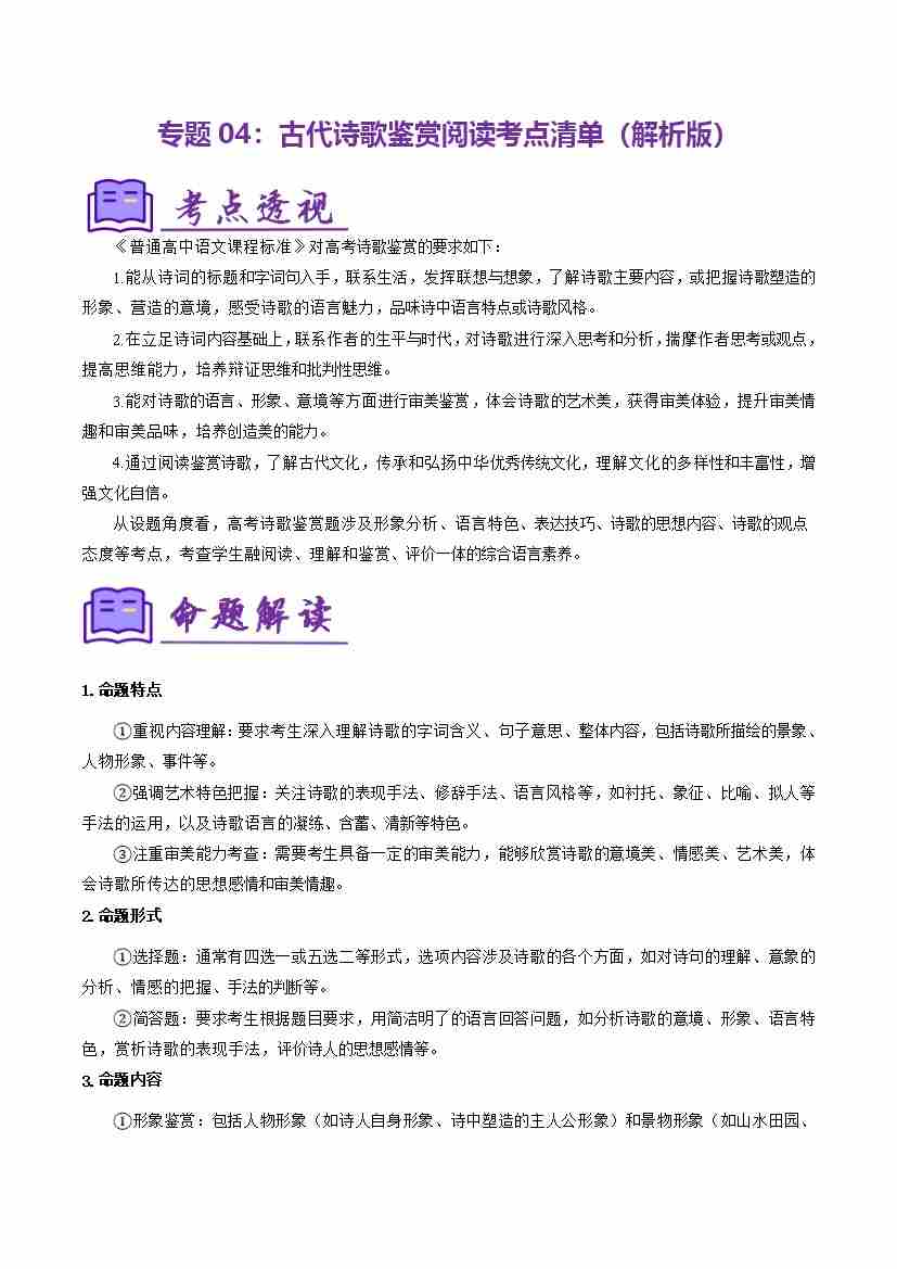 专题04:诗歌鉴赏阅读(考点清单)(学生版)