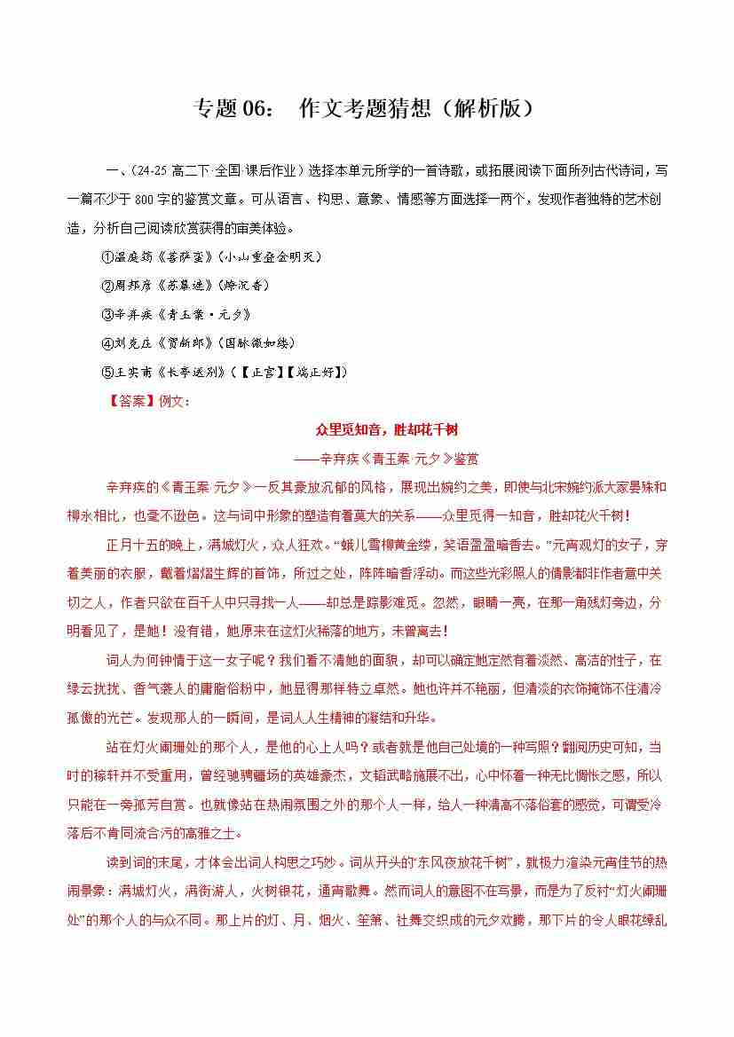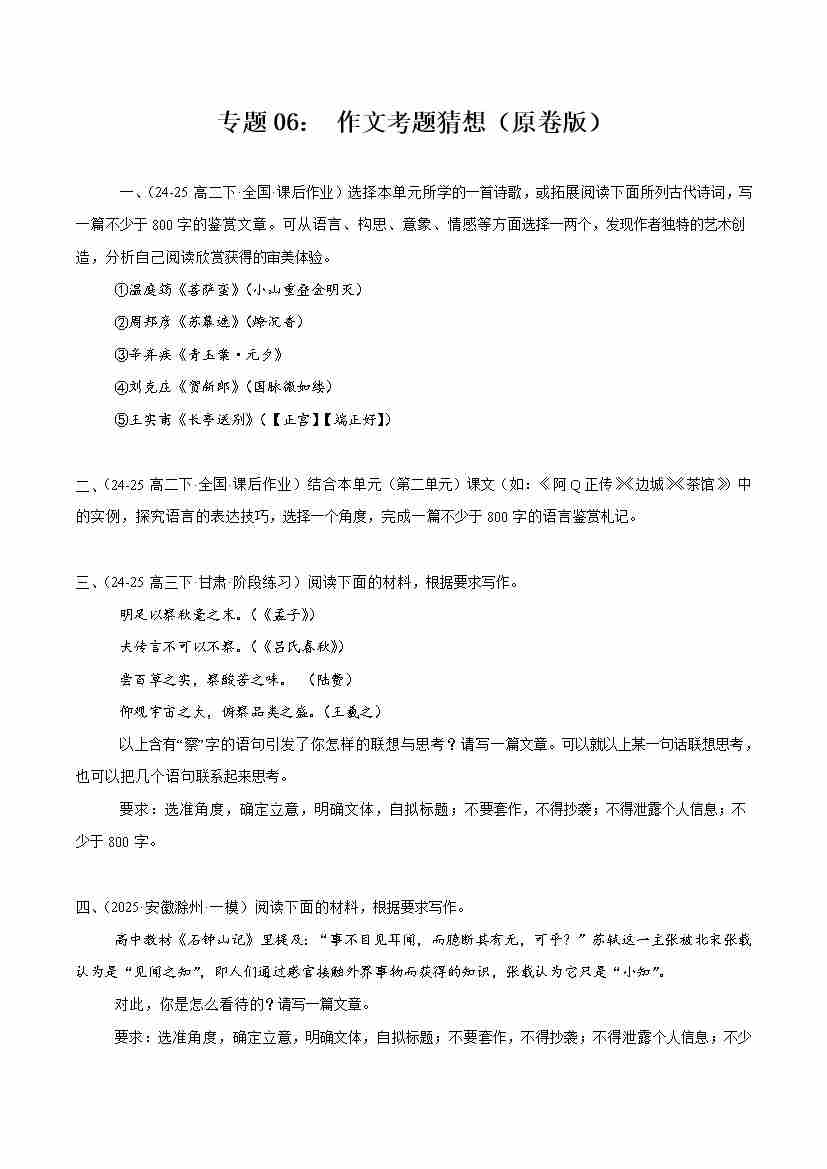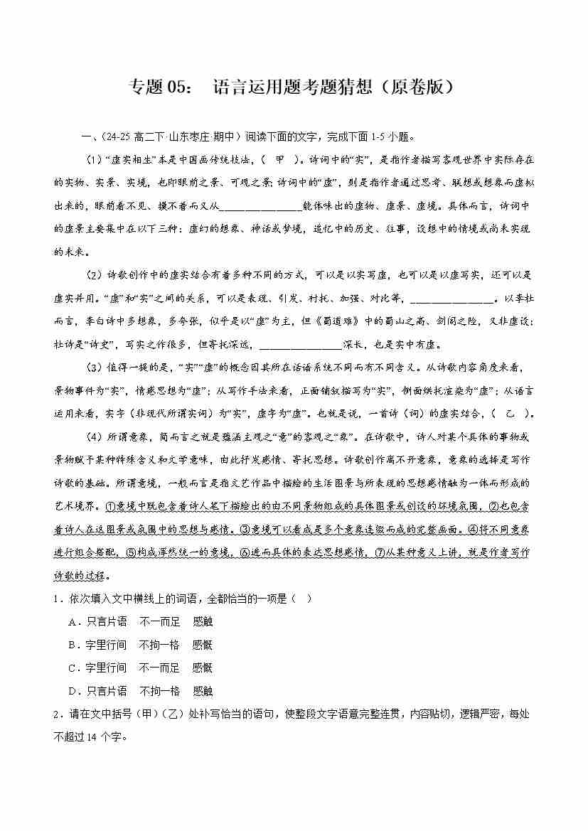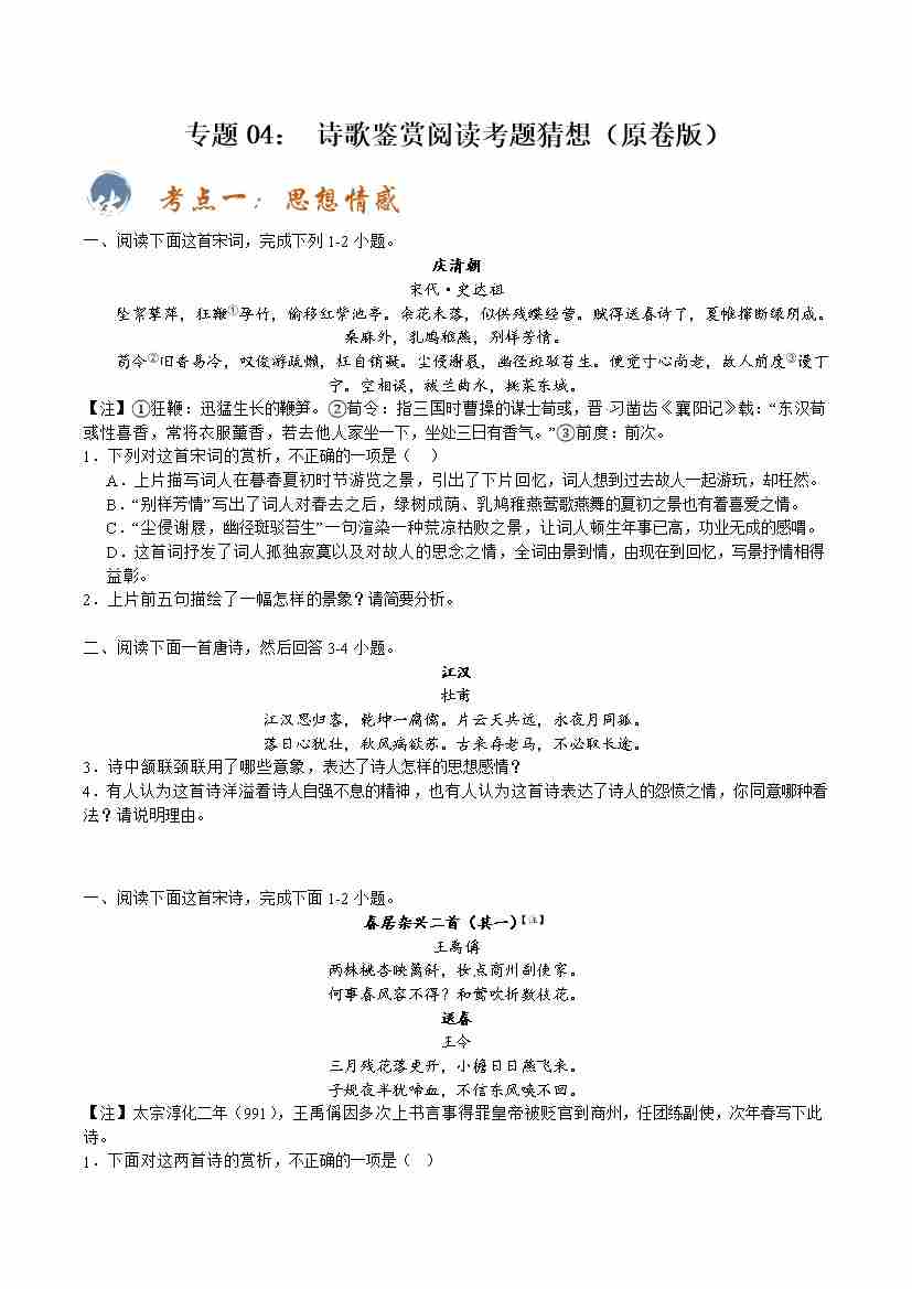 专题04:诗歌鉴赏阅读(考题猜想)(学生版)