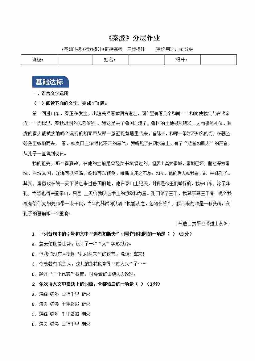 《秦腔》(分层作业)(原卷版)