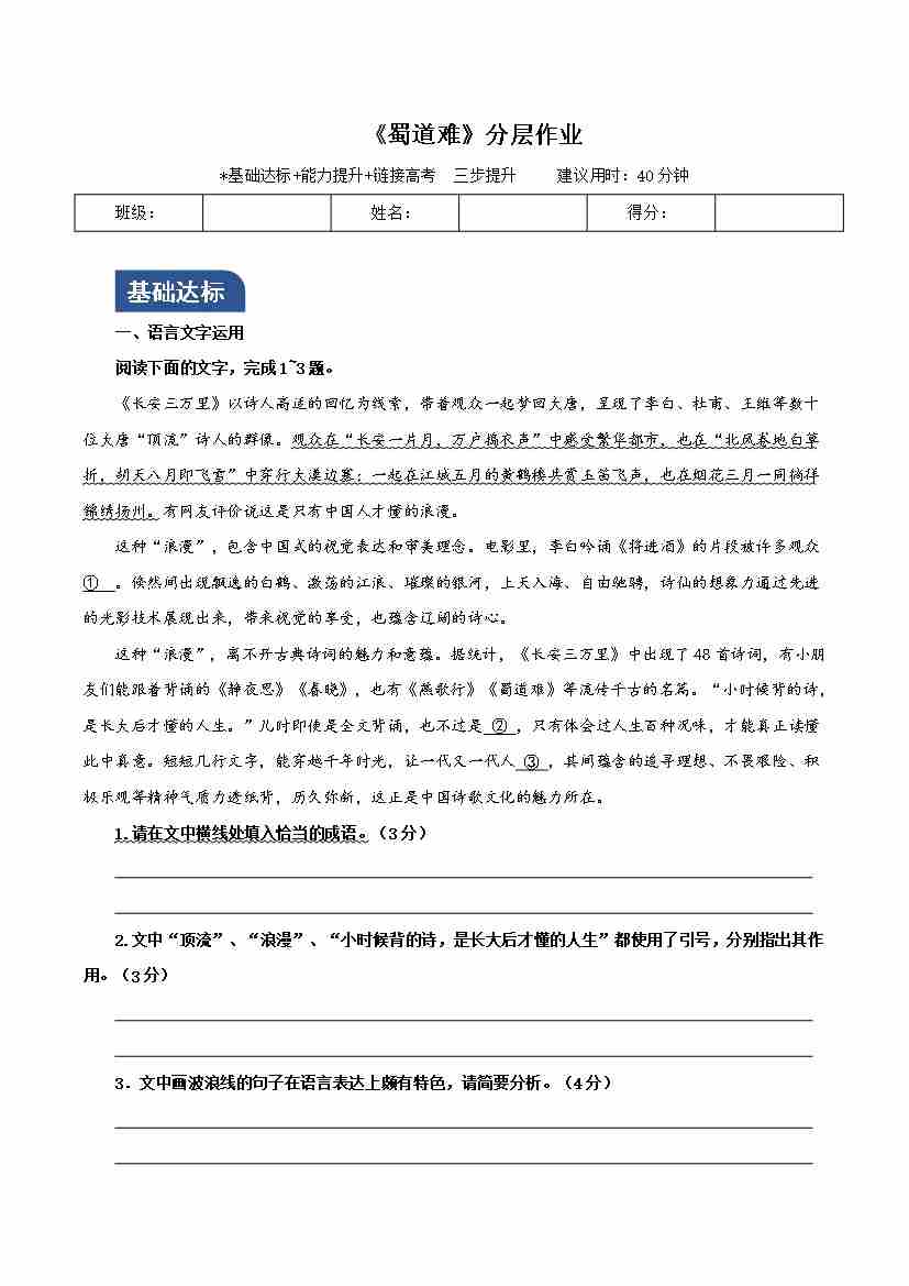 《蜀道难》(分层作业)(原卷版)