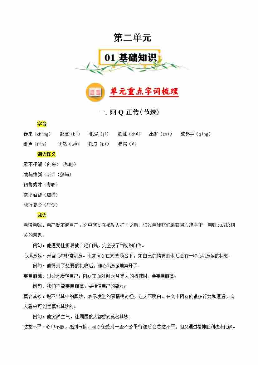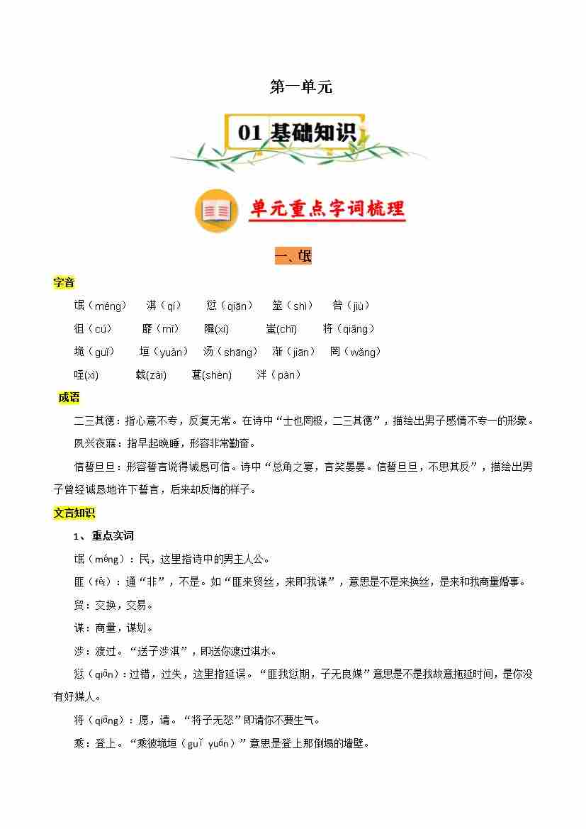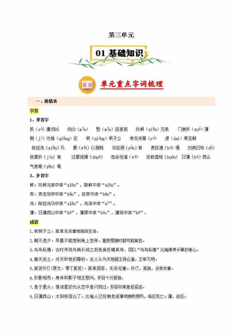 第一单元(知识清单)-(统编版选必下册)