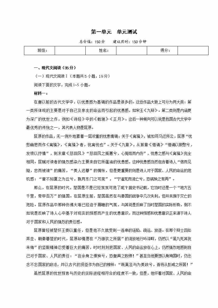 高中语文选择必修下册第一单元(单元测试)(解析版)