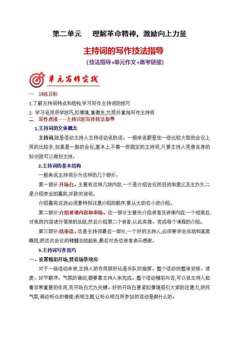 专题02:主持词的写作技法指导(统编版选必中册)