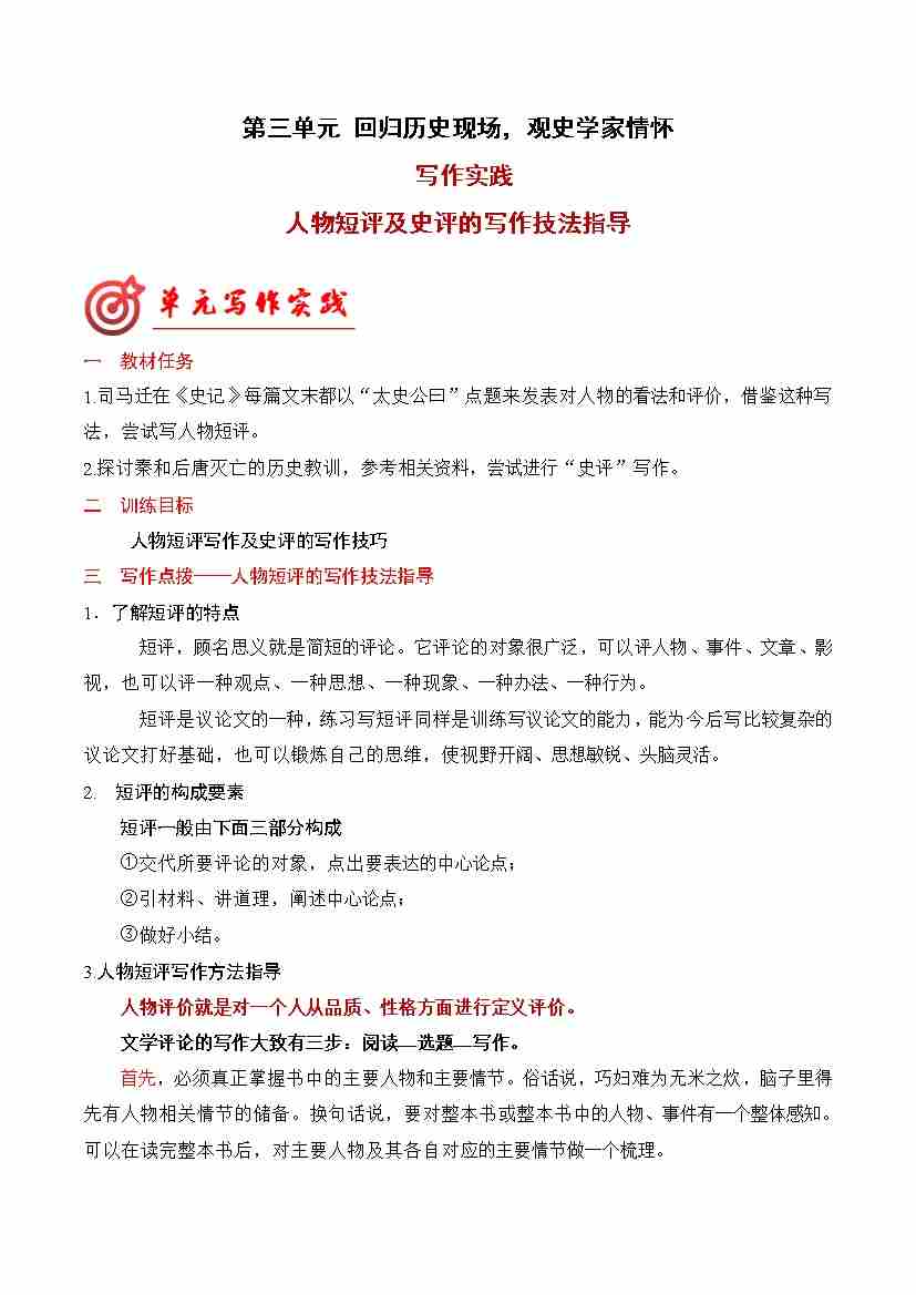 专题02:人物短评的写作技法指导(统编版选必中册)