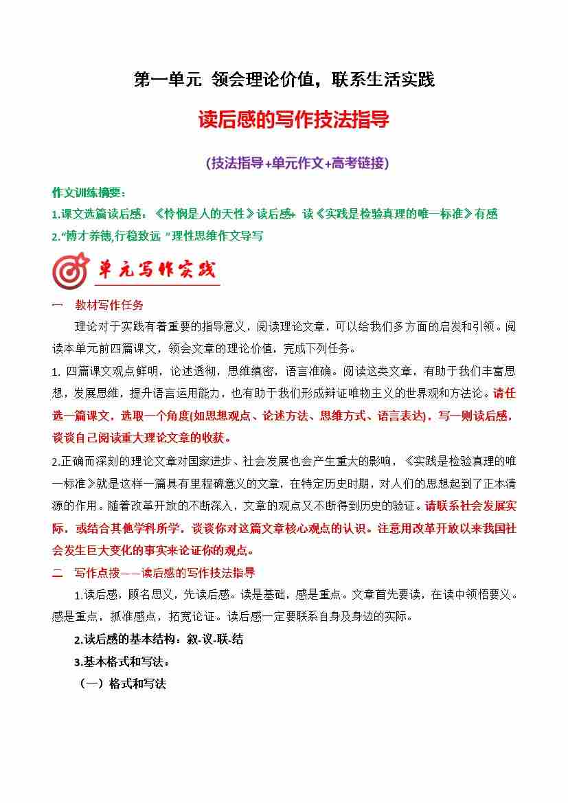 专题02:读后感的写作技法指导(统编版选必中册)