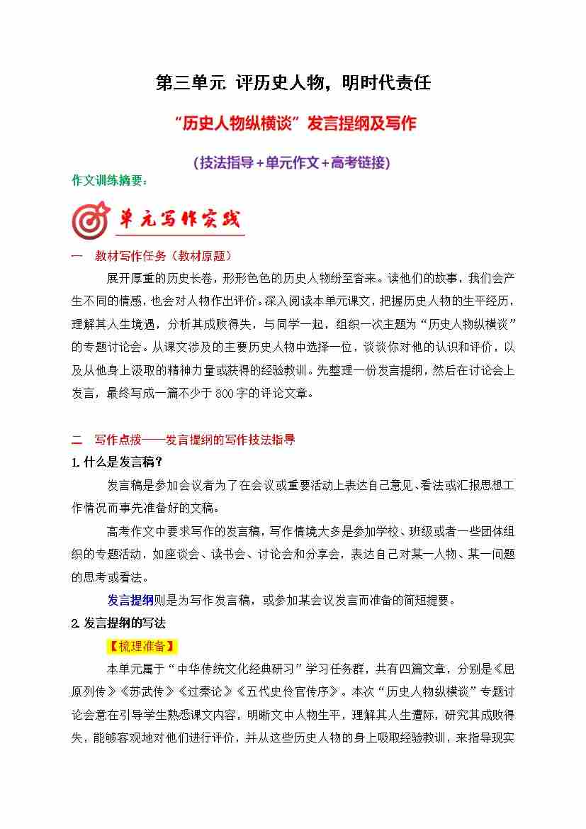 专题03:历史人物纵横谈发言提纲导写(统编版选必中册)