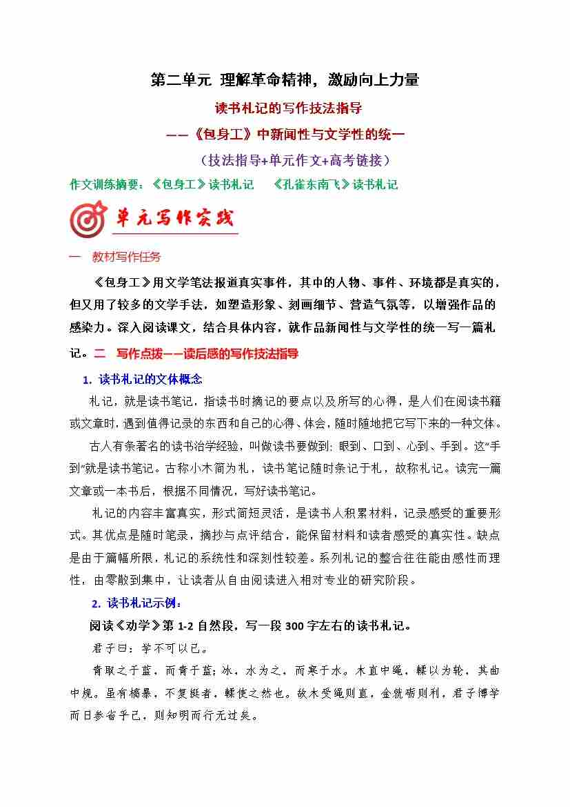 专题03:读书札记的写作技法指导(统编版选必中册)