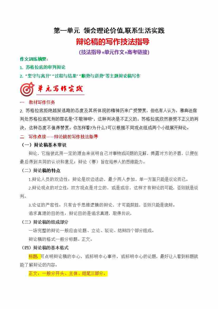 专题03:辩论稿的写作技法指导(统编版选必中册)
