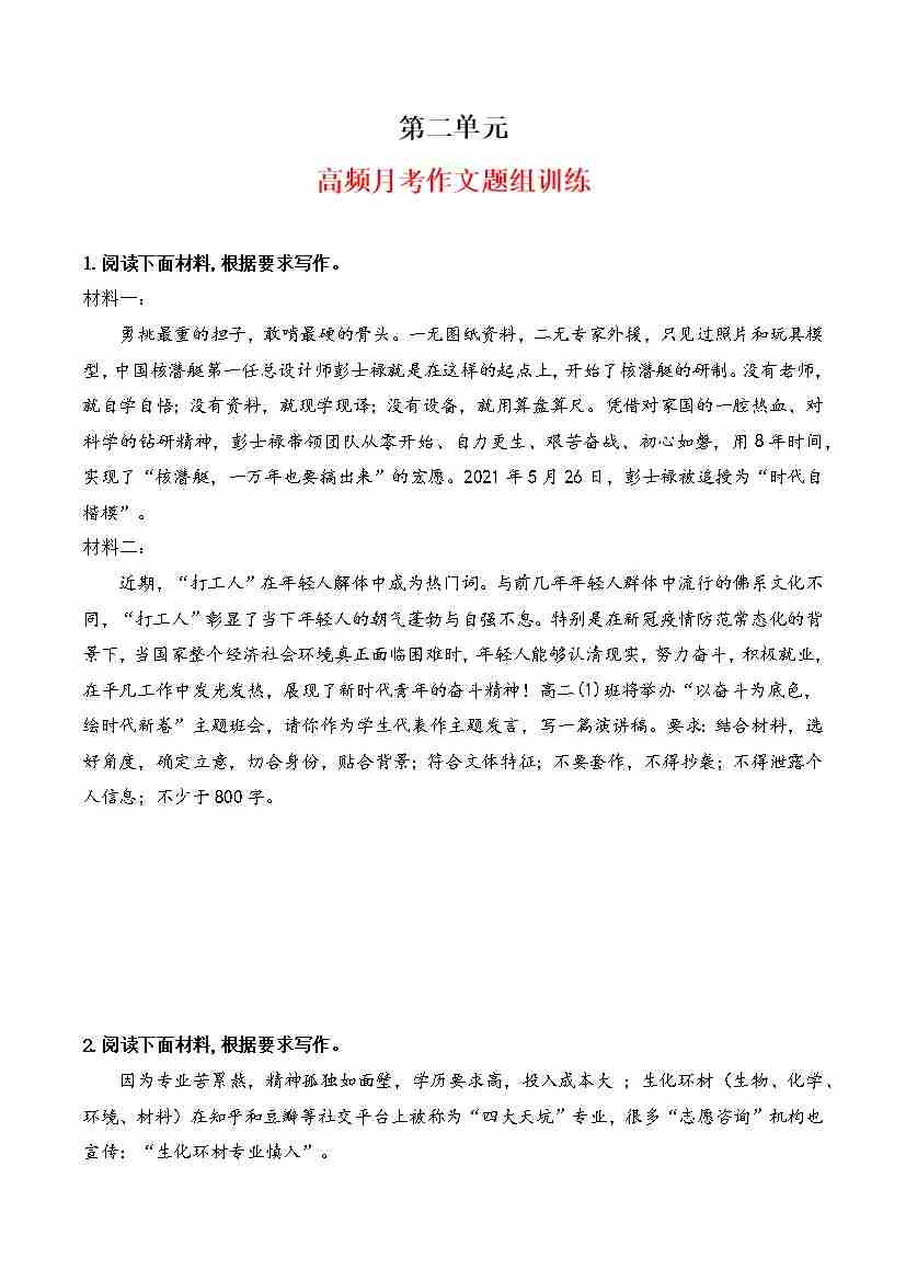 专题05:月考作文高频题组导写(统编版选必中册)(学生版)
