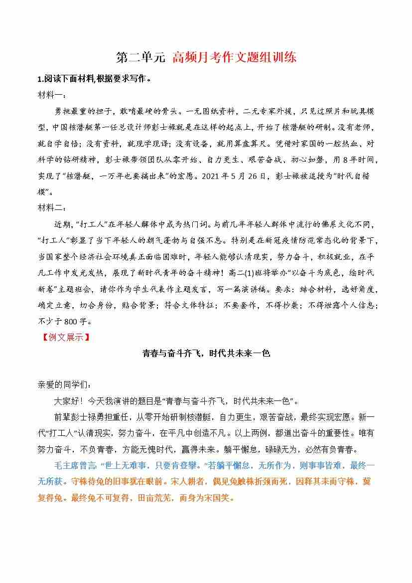 专题05:月考作文高频题组导写(统编版选必中册)(教师版)